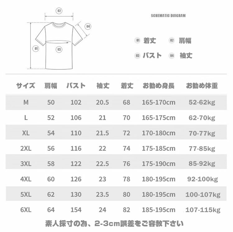 サイズ: M(S相当) L(M相当) XL(M/L相当) 2XL(L/LL相当) 3XL(LL/3L相当) 4XL(3L/4L相当) 5XL(4L/5L相当) 6XL(5L/6L相当)