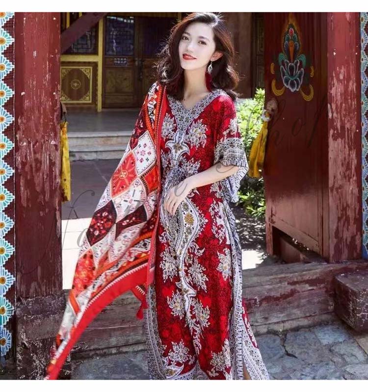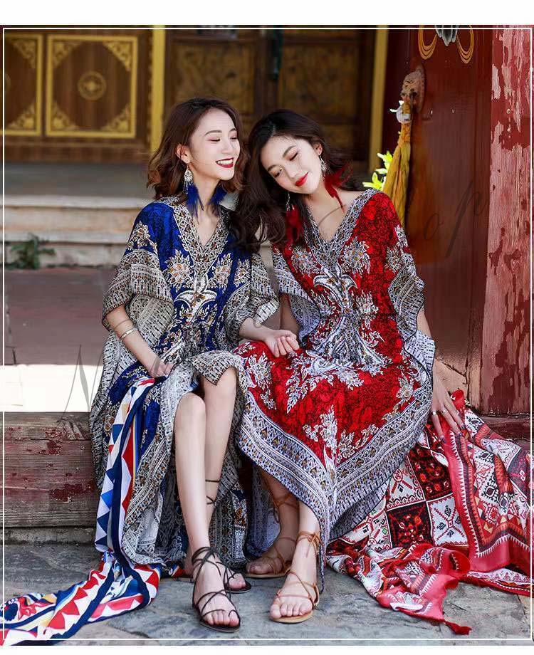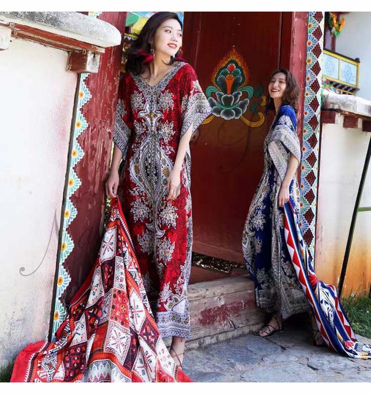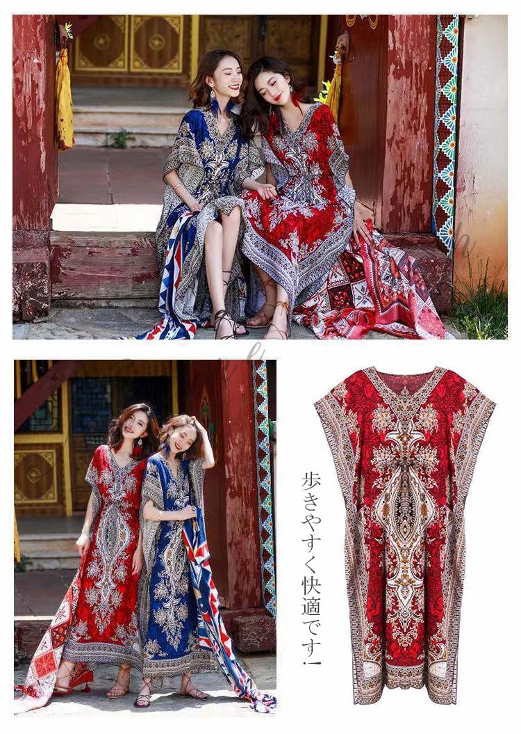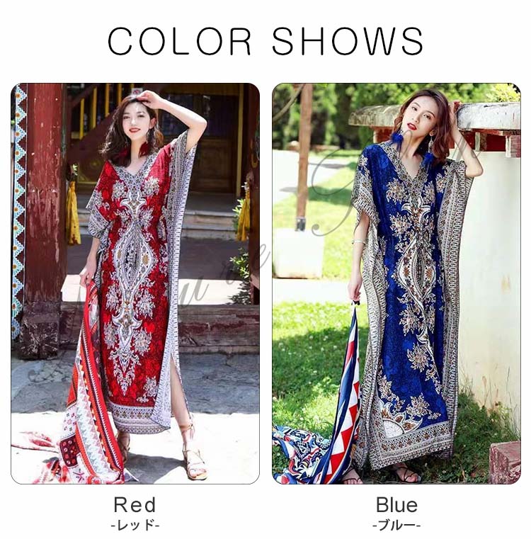 マキシワンピース ガラベーヤ風 女性用 トップス シャツ レディース ワンピース アジアン 半袖 ファッション 海 トラベル 出張 旅行 大人気 エスニック衣装