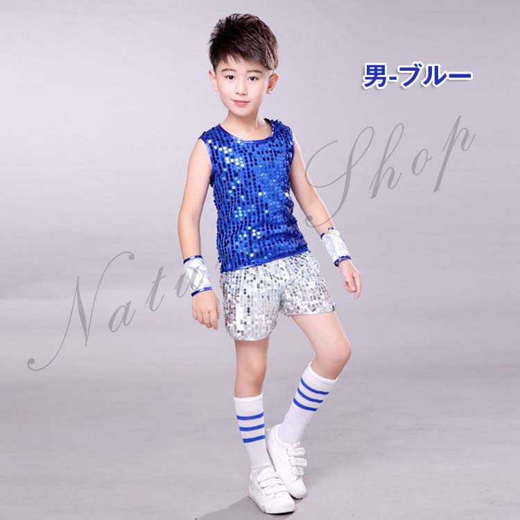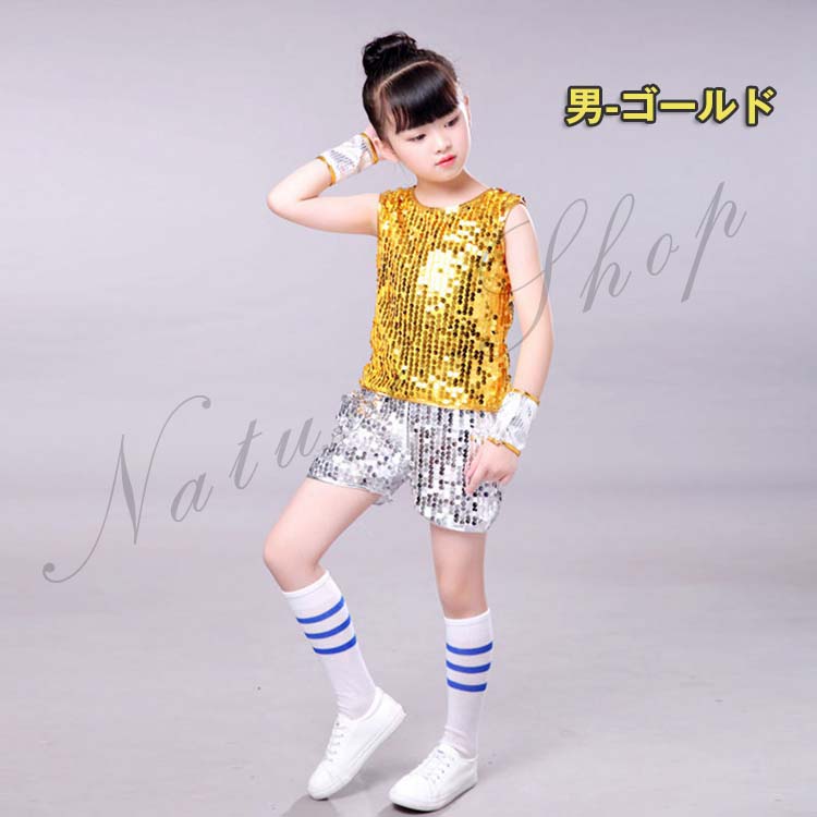 スパンコール衣装 キッズ トップス ダンス衣装 ヒップホップ スパンコール 社交ダンス ショート丈 コスチューム ダンスウェア ラテン ノースリーブ ジャズ 女の子 男の子 ジュニア