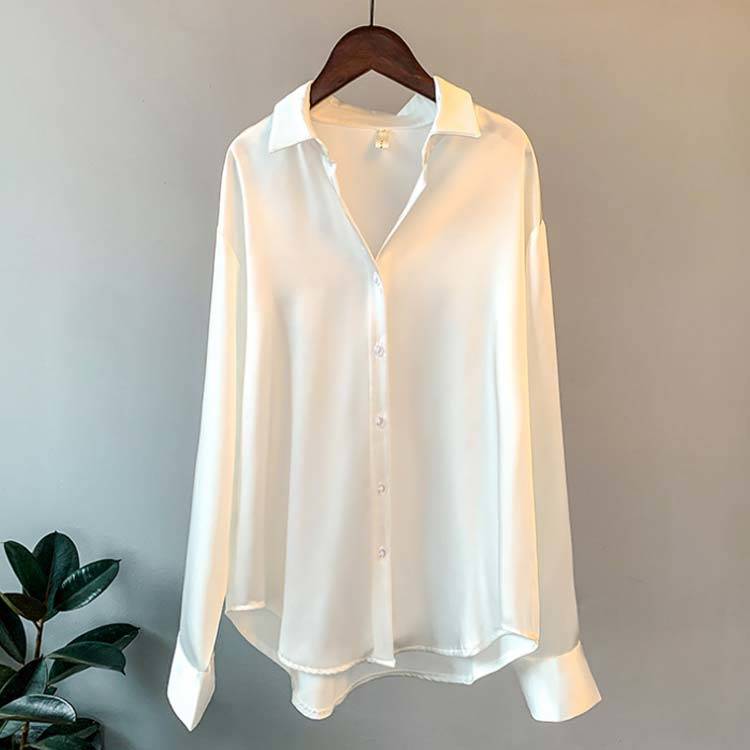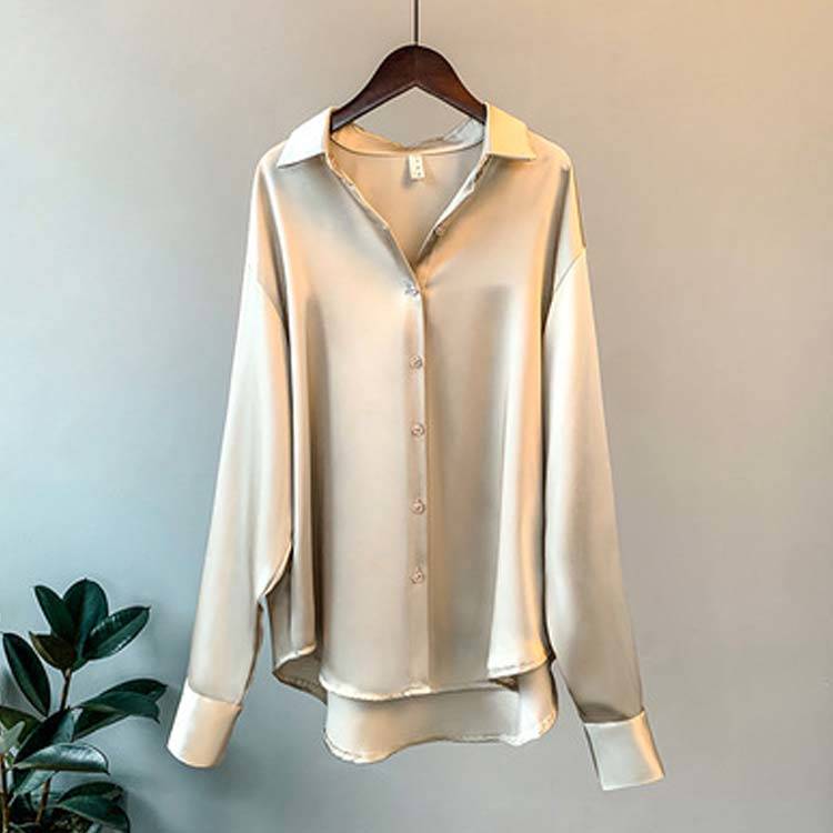 サテン風シャツ 光沢感 無地 オーバー