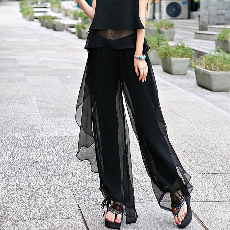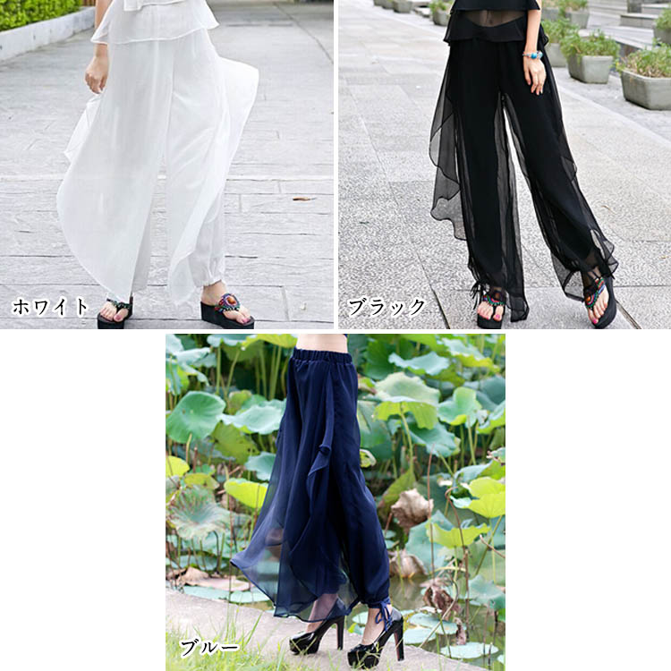 シフォンロングパンツ レディース ワイ