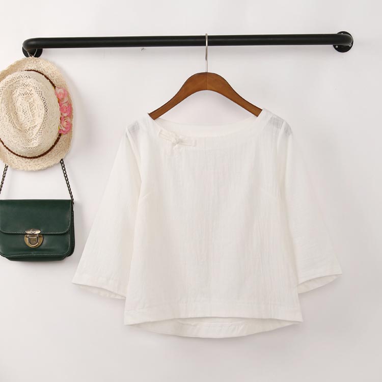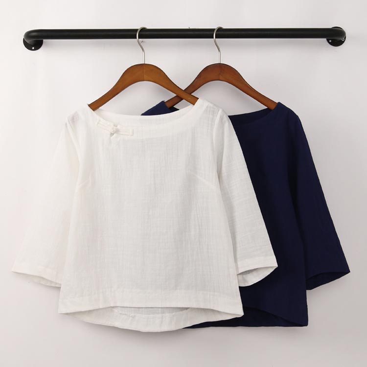 7分袖 綿麻トップス 綿麻シャツ 大人