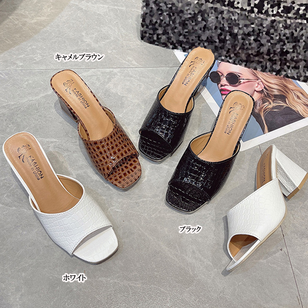 レディース クロコ型押し ミュールサン