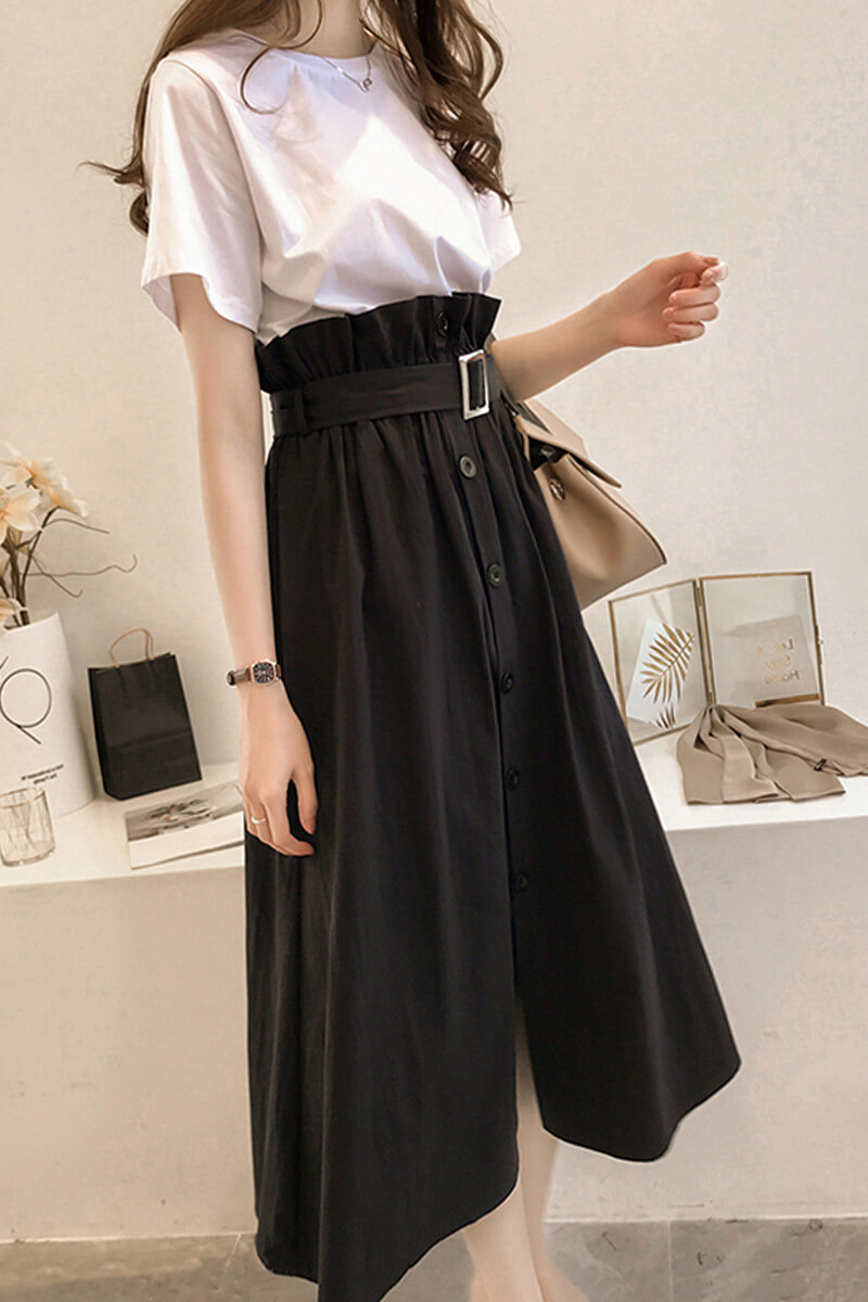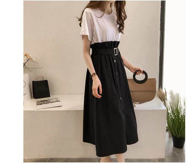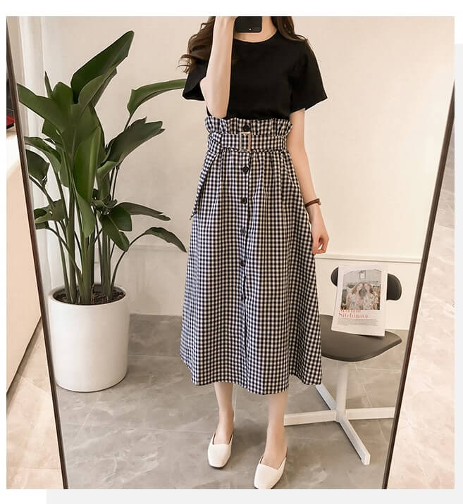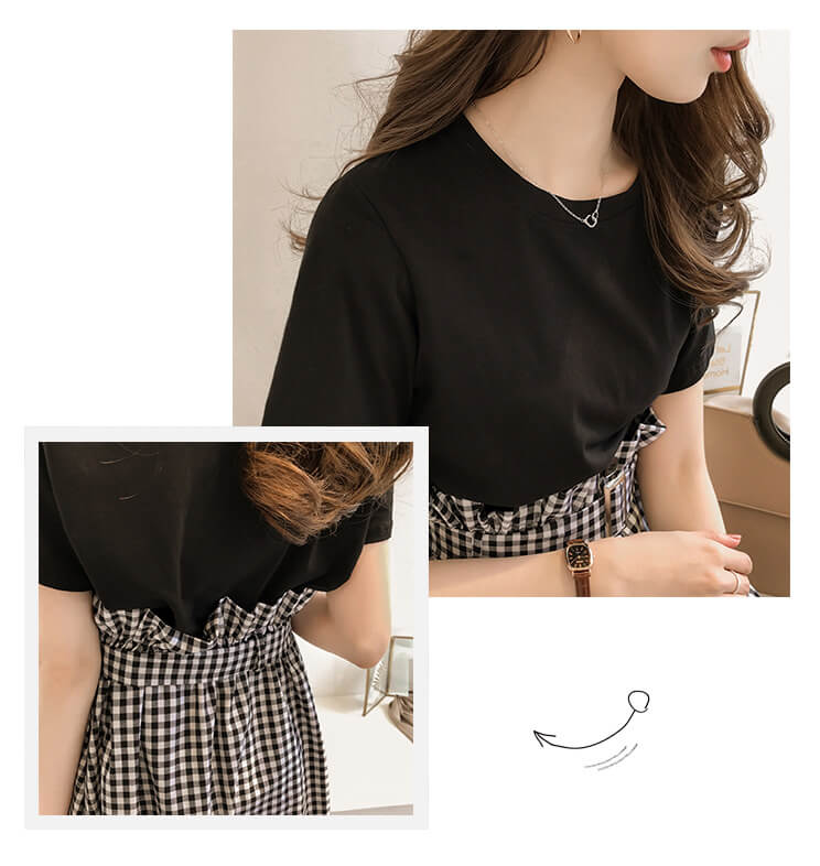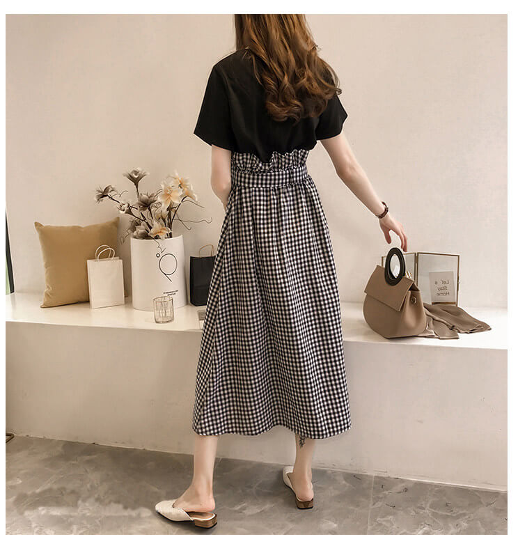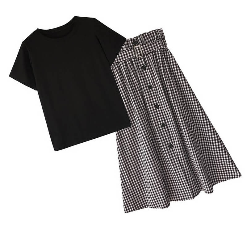 カラー: 白Tシャツ+黒スカート 黒Tシャツ+チェック柄