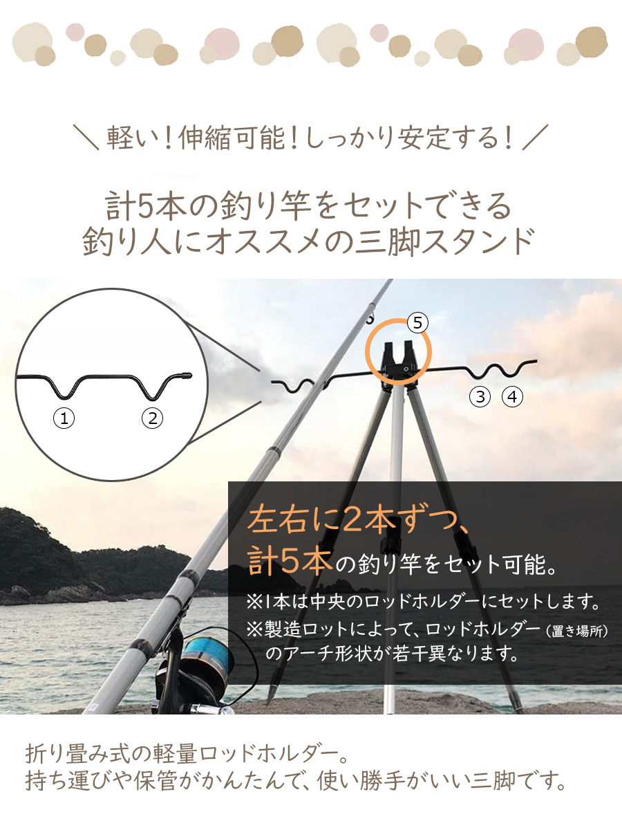 釣り竿ホルダーは一度に5本の釣竿が利用できます。