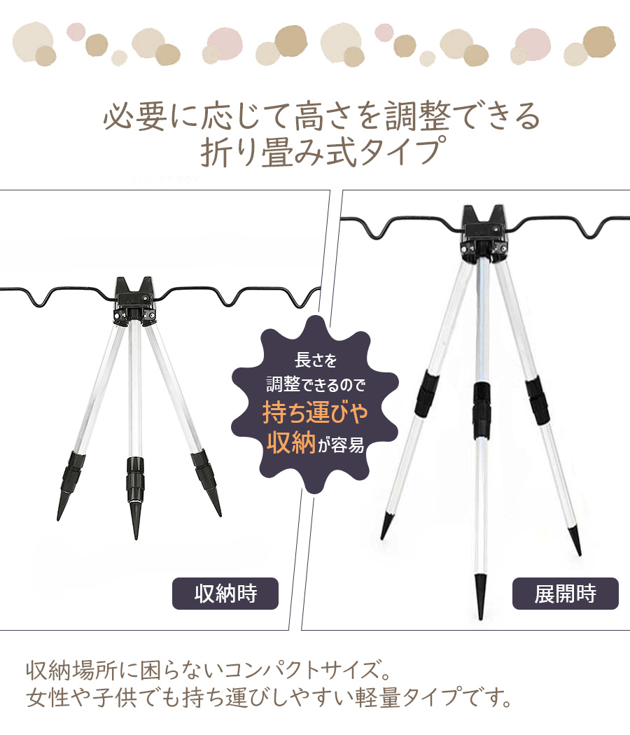 高さの調整ができるので、釣り場に合わせてお好みの高さに設定していただけます。