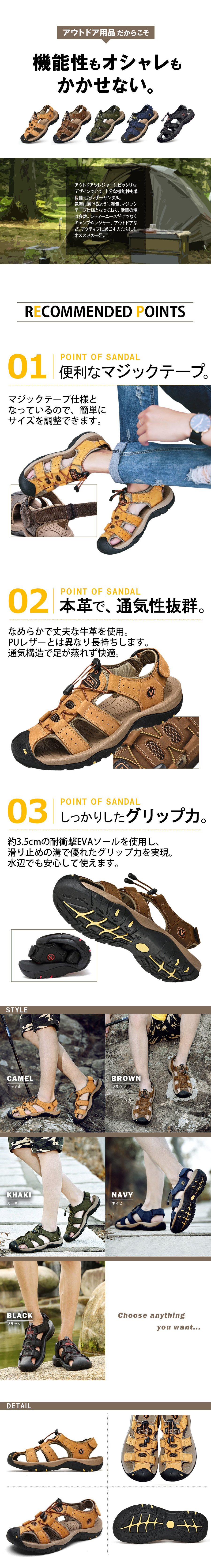 スポーツ サンダル メンズ 牛革 スポ