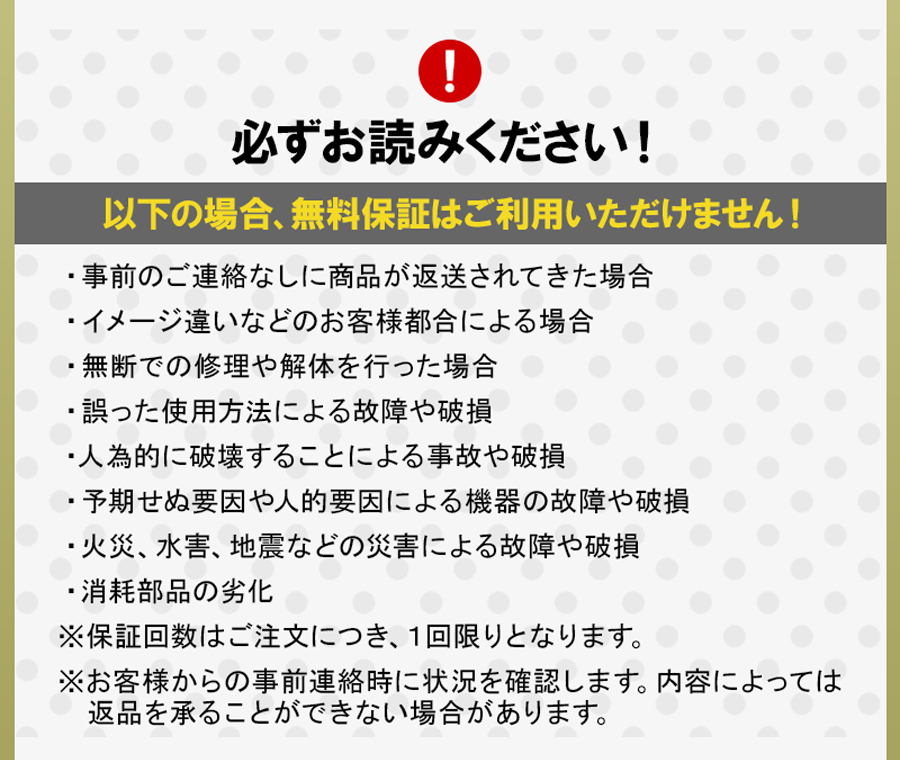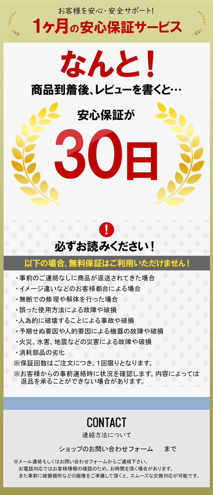 レビューを書くと保証期間30日に ホー