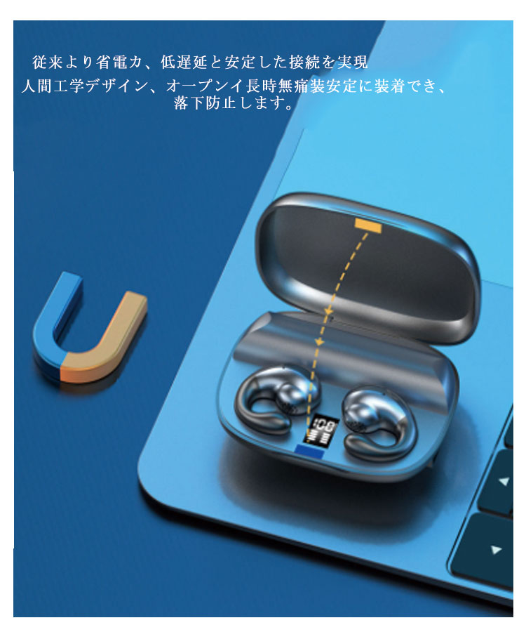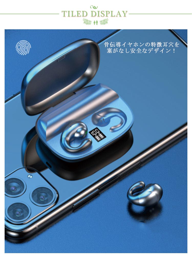 ワイヤレスイヤホン 骨伝導 Bluetooth 5.2 ブルートゥース ワイヤレス iPhone 通話 骨伝導イヤホン Siri対応 自動ペアリング 防水 バッテリー残電量表示