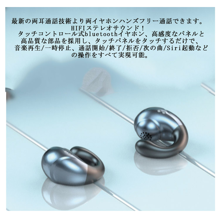 タッチコントロール式bluetoothイヤホン、高感度なパネルと高品質な部品を採用し、タッチパネルをタッチするだけで、音楽再生/一時停止、通話開始/終了/拒否/次の曲/Siri起動などの操作をすべて実現可能。