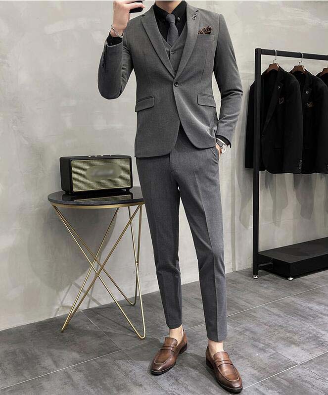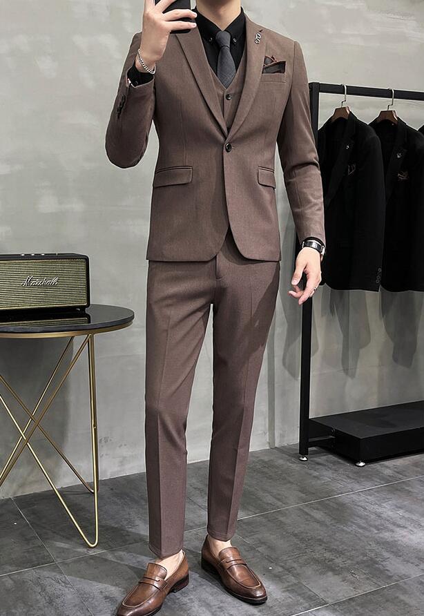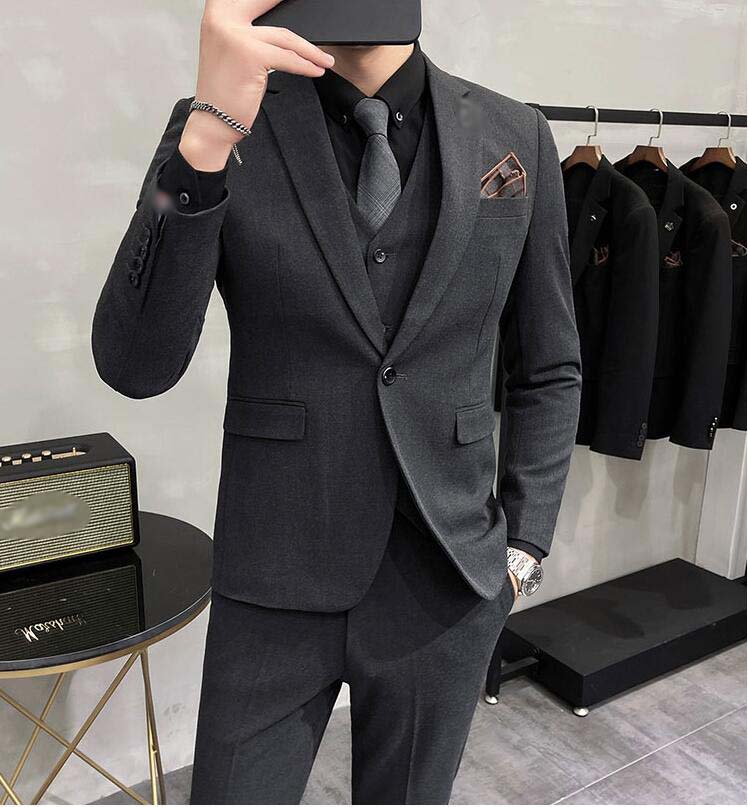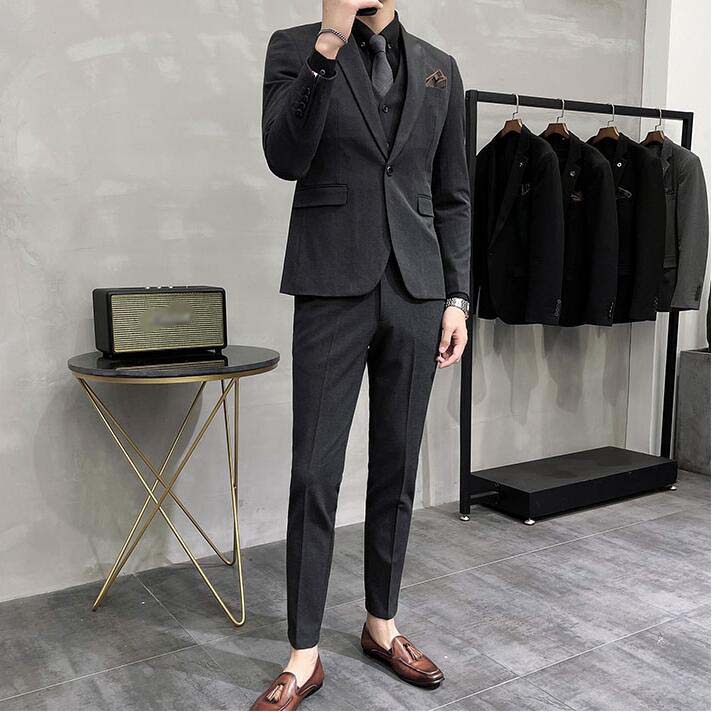 オールシーズン メンズスーツセット 細身スーツ スリーピース スーツ 父の日 誕生日プレゼント カジュアルスーツ スタイリッシュスーツ メンズ スーツ 冠婚葬祭 面接 事務服