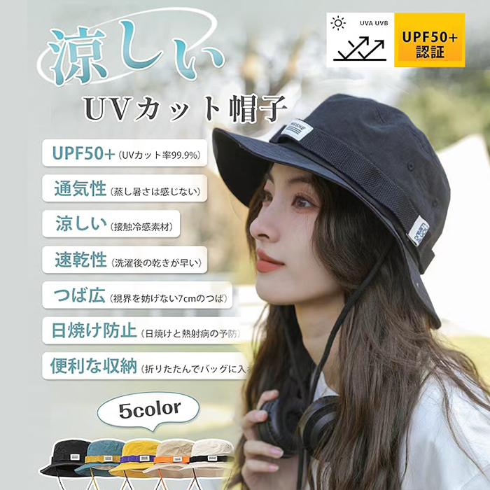 涼しい UVカット 帽子日焼け防止 UPF50+認証済み 冷感 軽量 深い つば広 折りたたみ サファリハット レディース 紫外線対策 吸汗速乾 日除け 小顔 防風あごひも 通気性 抗菌防臭加工
