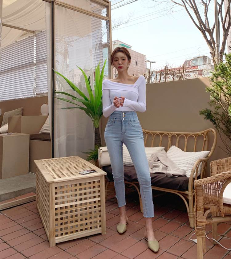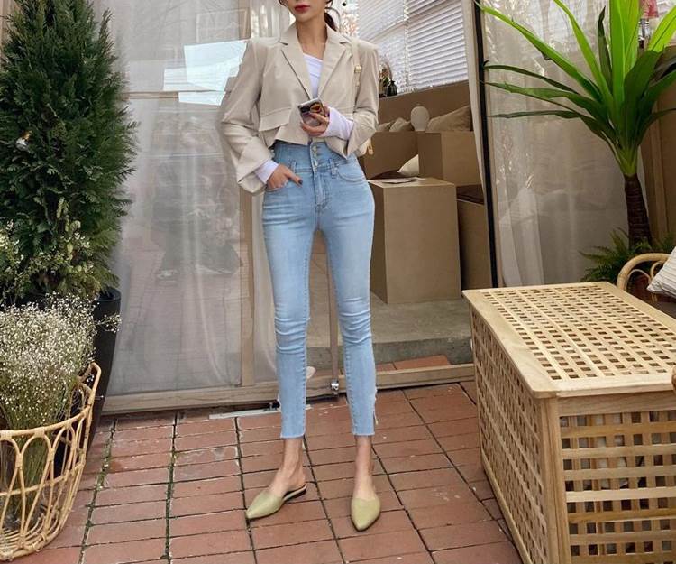 ラフな切りっぱなしが今年っぽい、オシャレ女性に欠かせないハイウエストスキニーデニムおパンツ♪