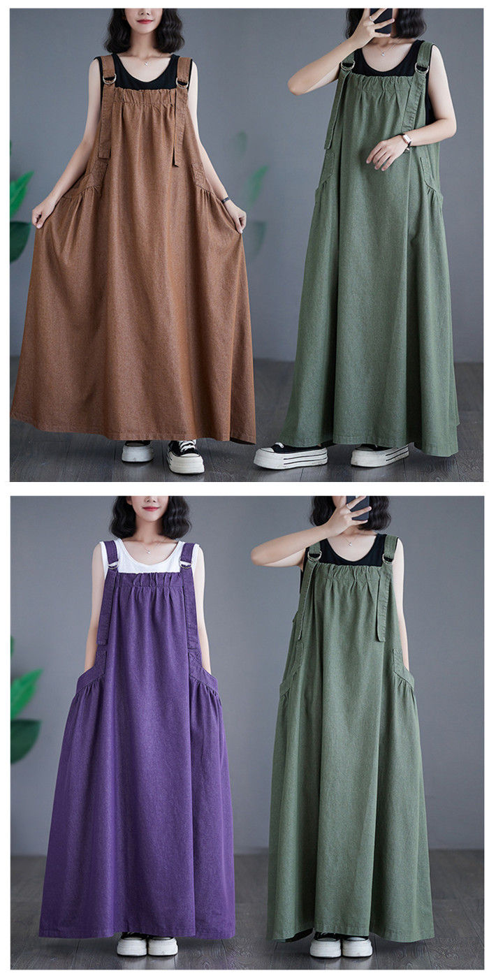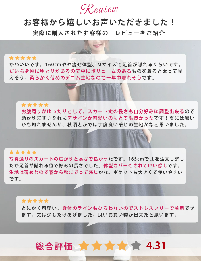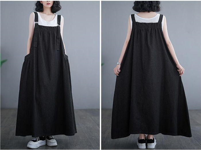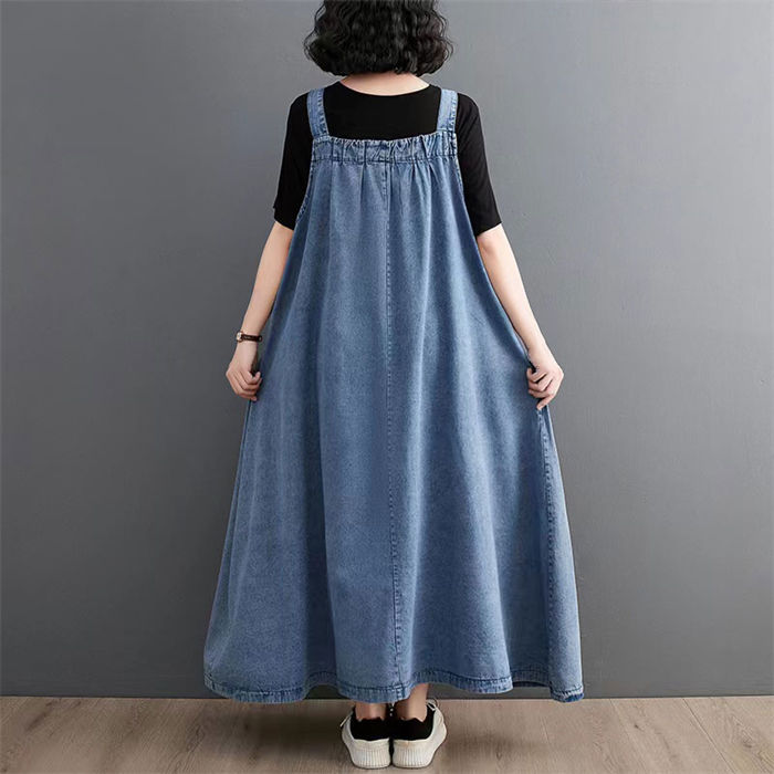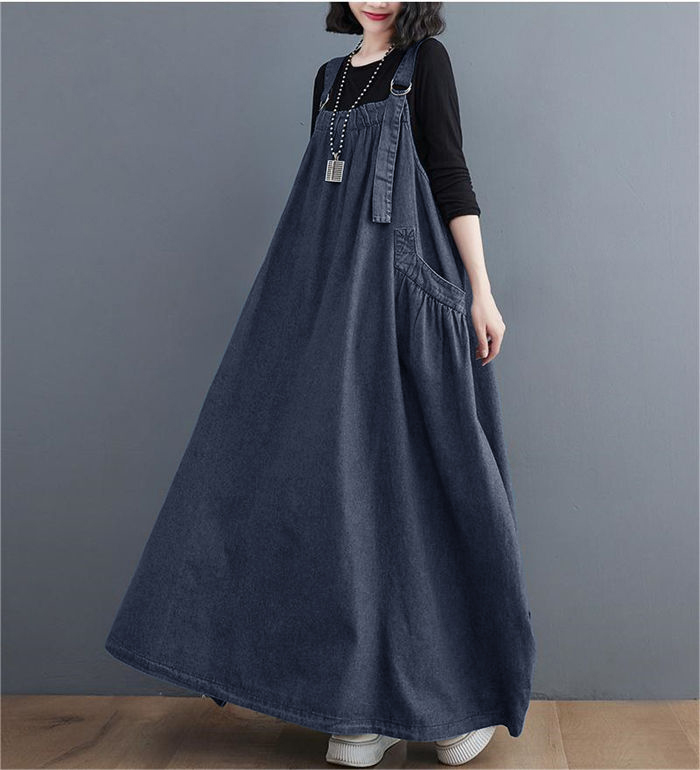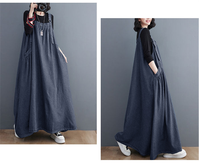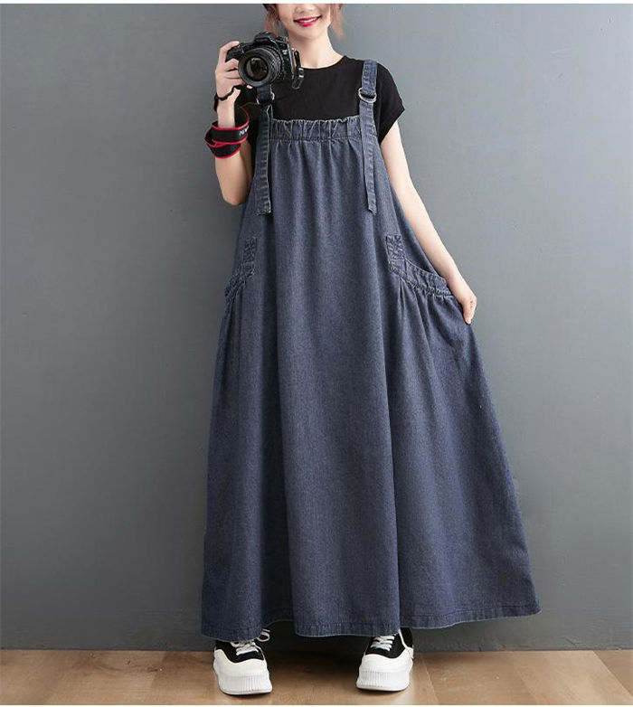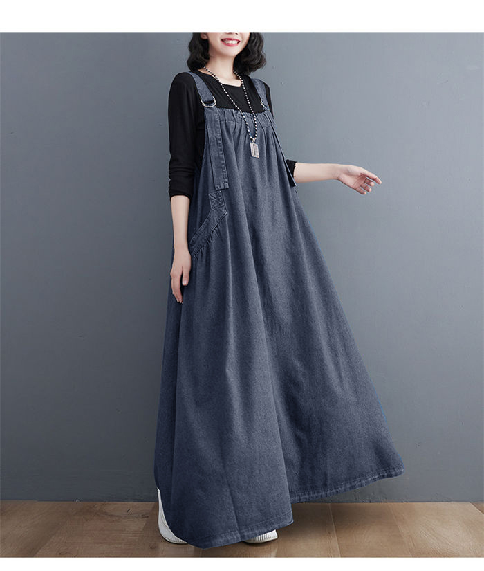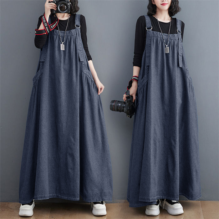 高評価 ジャンパースカート デニムワンピース レディース デニム サロペットスカート キャミワンピース 重ね着 ゆったり キャミワンピ ロングワンピース 着痩せ