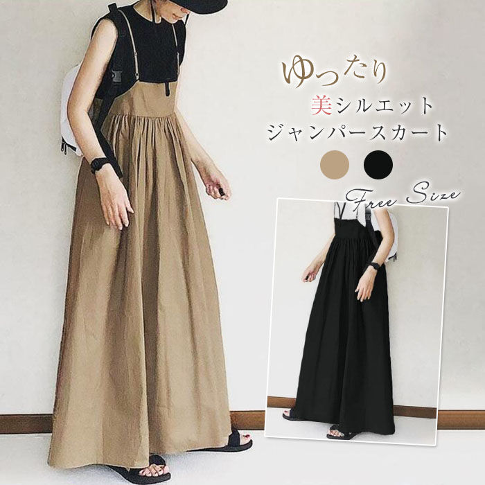 シフォン ワンピース ジャンパースカート サロペット スカート レディース フレア プリーツ ロングワンピース オールインワン ジャンスカ ジャンパー サロペット 春