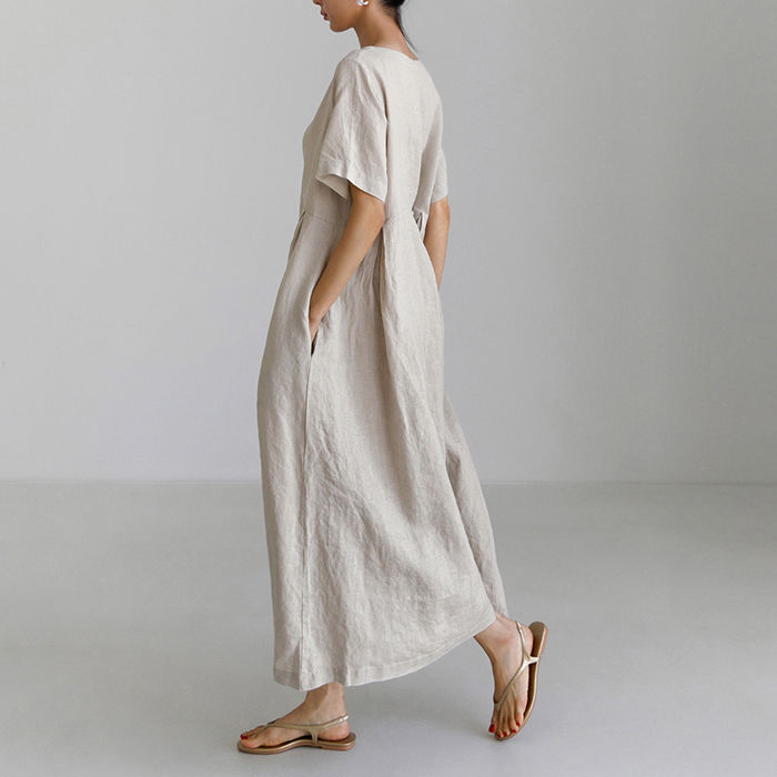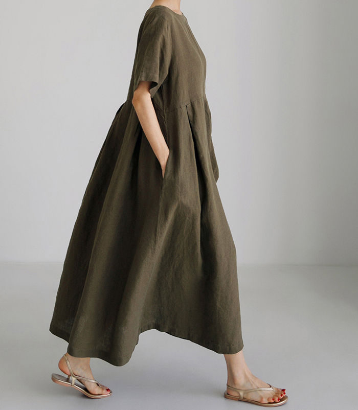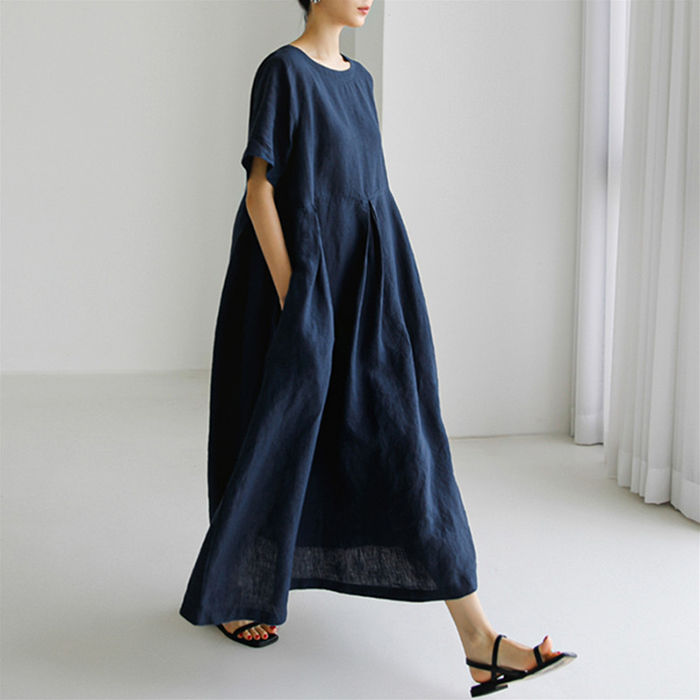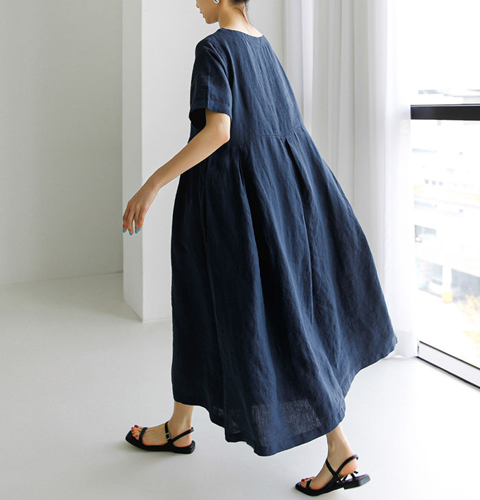 きれいめワンピース 30代 韓国ワンピ シンプル 無地 体型カバー 細見え 着痩せ ワンピース レディース 春 夏 半袖 ロング丈 ロングワンピース カットソーワンピ 上品ワンピース スリット バック