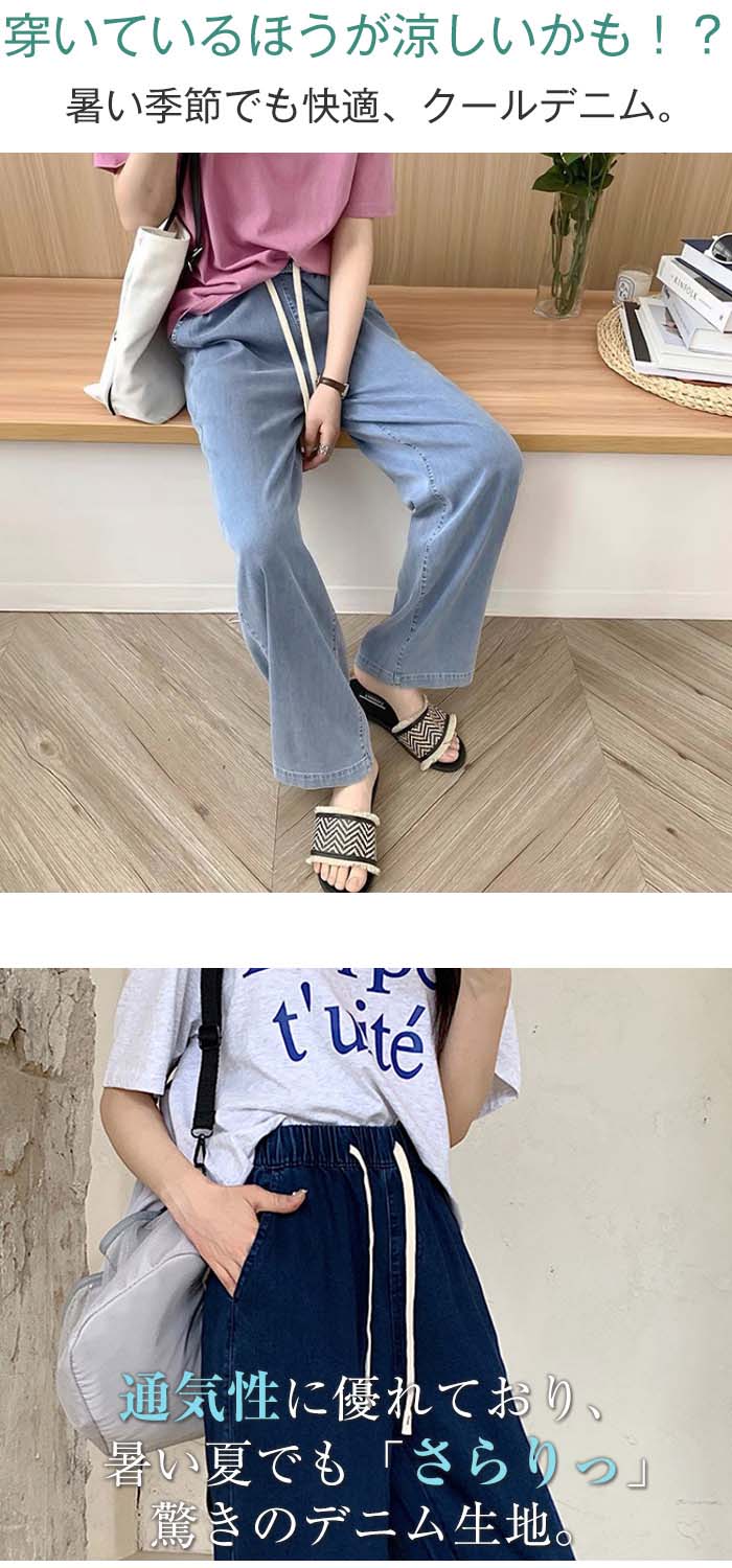 夏にうれしい接触冷感素材のデニムパンツ