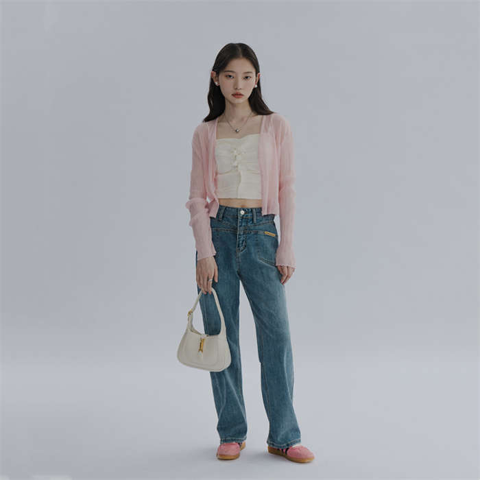 デニムパンツ ビジュー付き