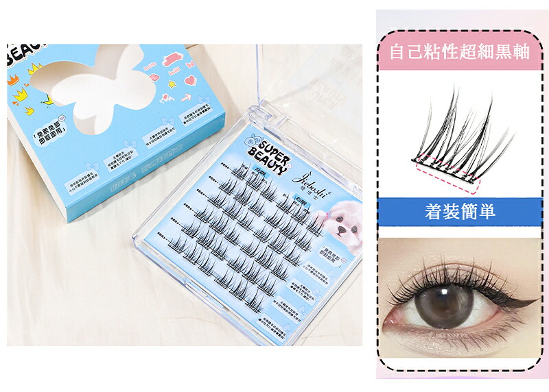 【アイライナー効果】極細のまつ毛で、自然なアイライン効果を持ちながら、目を刺激せず、目元に負担をかけません。