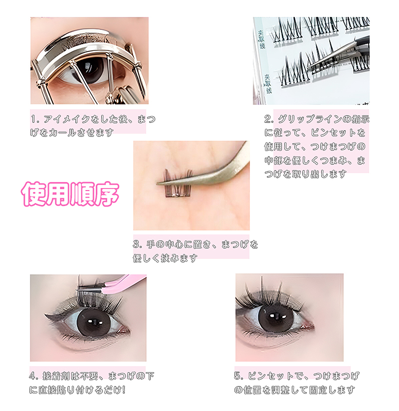 【手軽で迅速】接着剤を塗る手間を省き、ピンセットをで付けまつ毛を挟むだけで貼り付けられます。片目に3~4本が十分です。早朝メイクを素早く仕上げます。