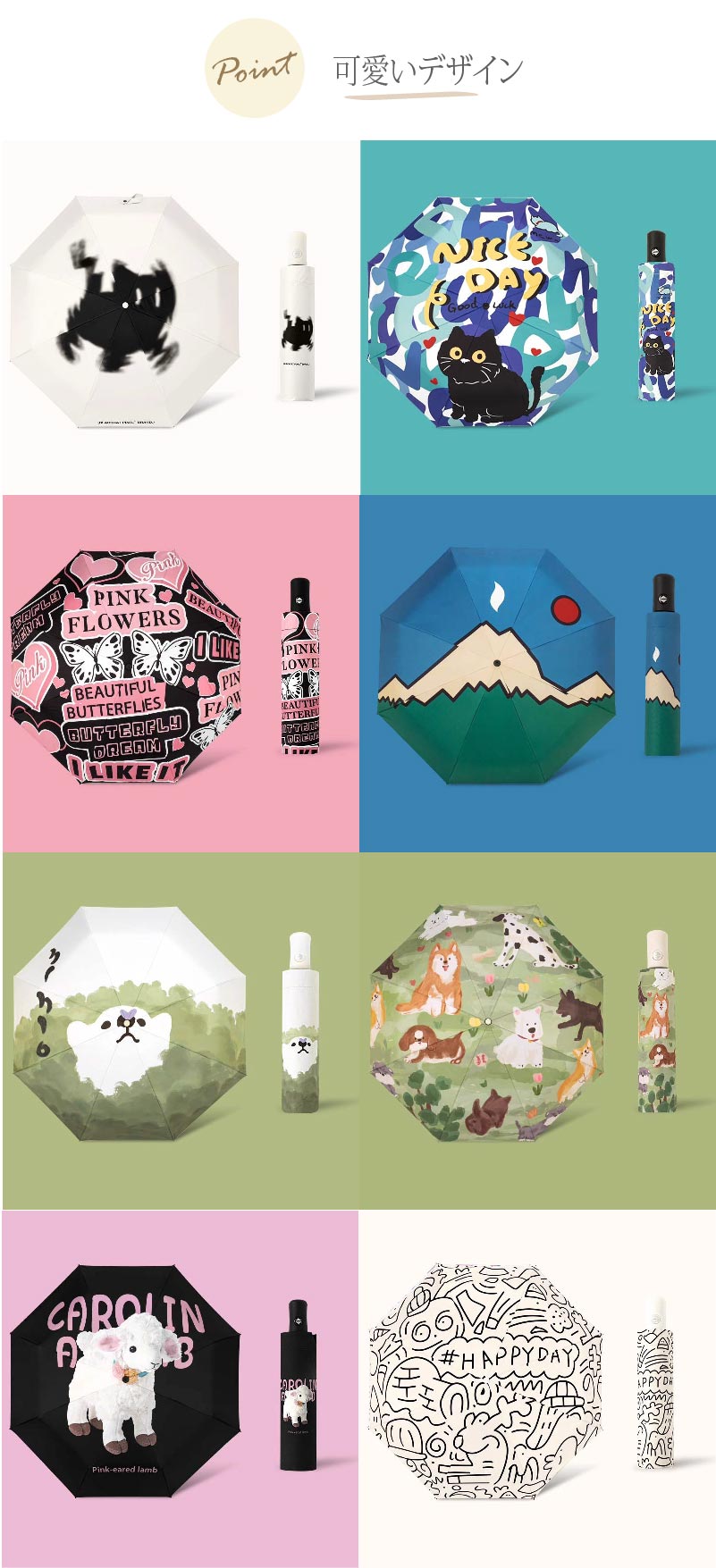 Key0: 猫 ピンク 山 熊 犬 羊 Happy day