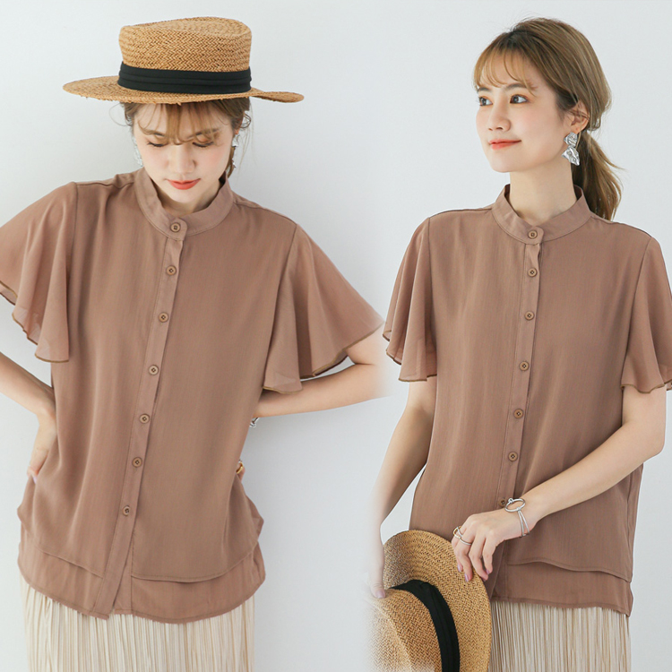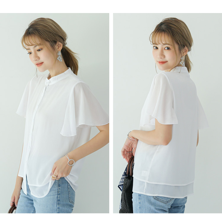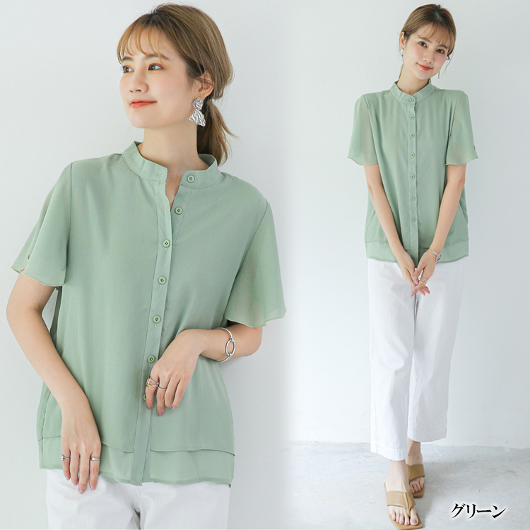 シアースリーブ ドッキングシャツ ボウタイシャツブラウス