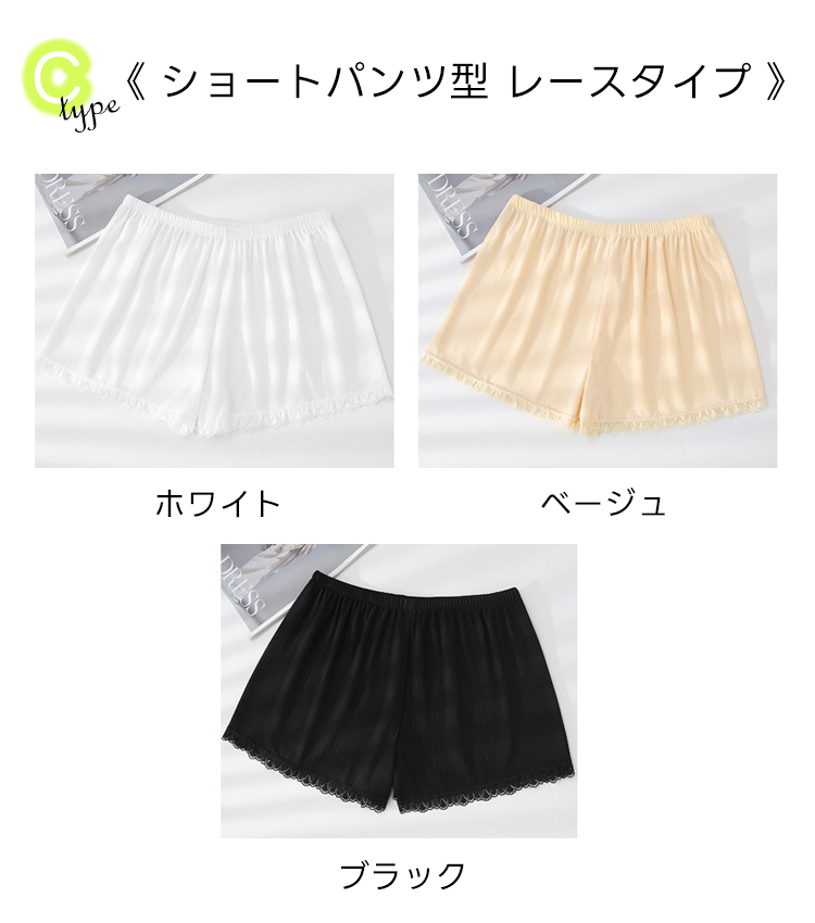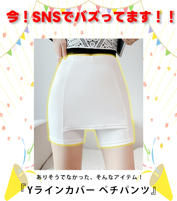 インナー Yラインカバー レディース ペチパンツ ペチコート パンツ Vライン 透け防止 黒 白 スカートインナーパンツ 股ズレ防止 ショート丈