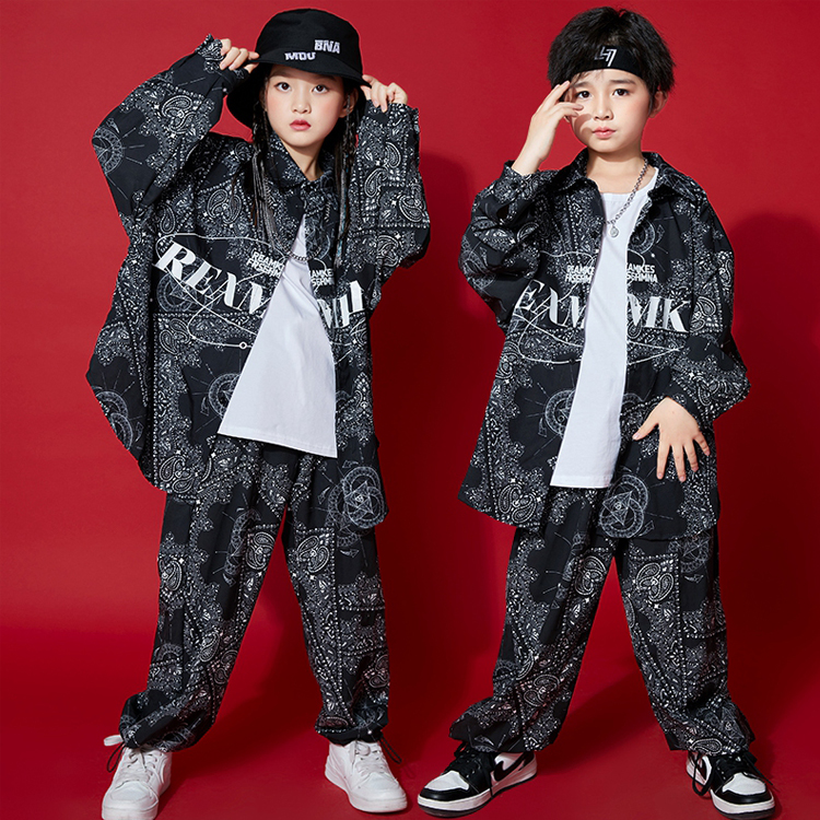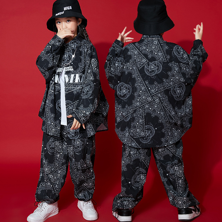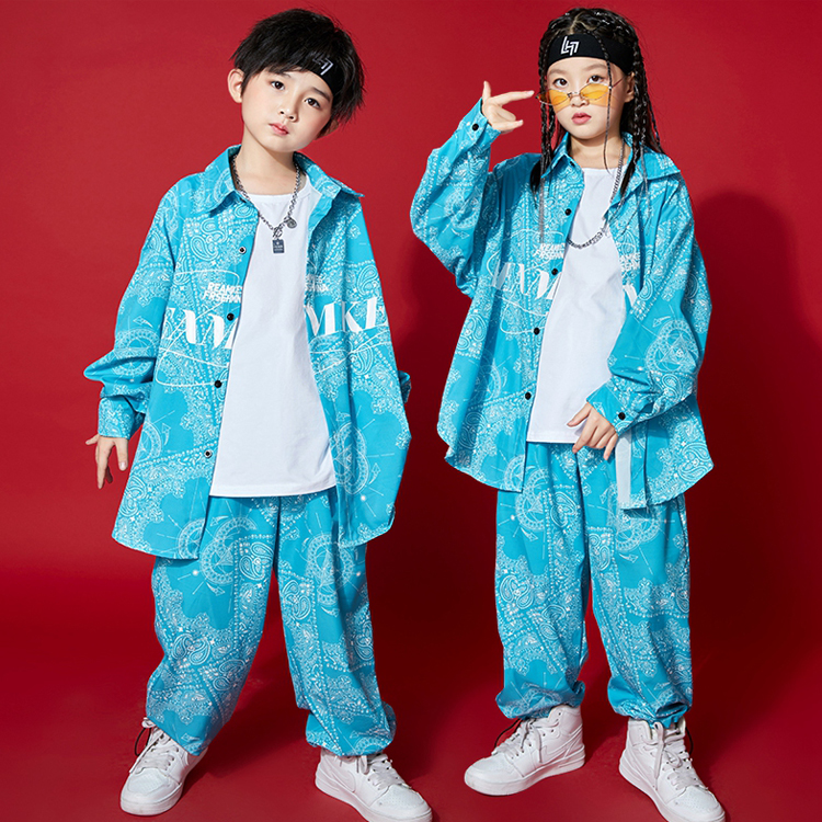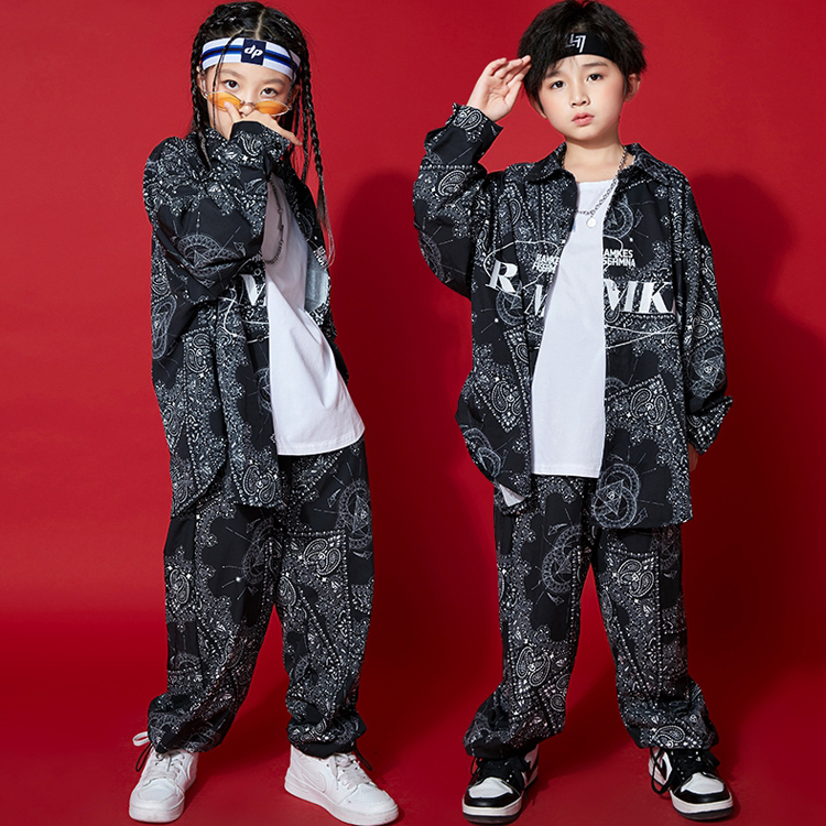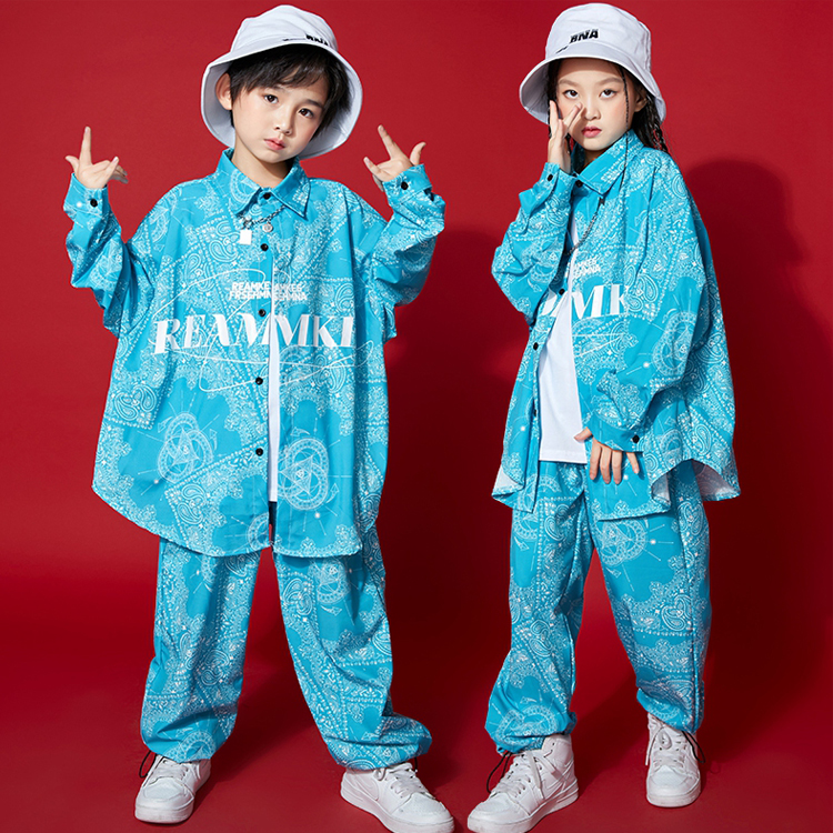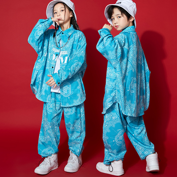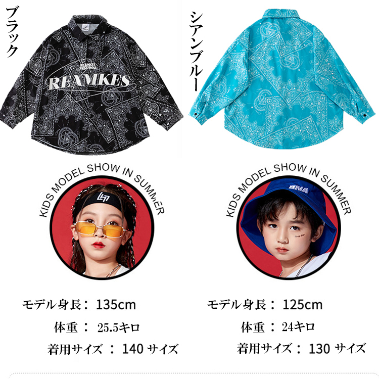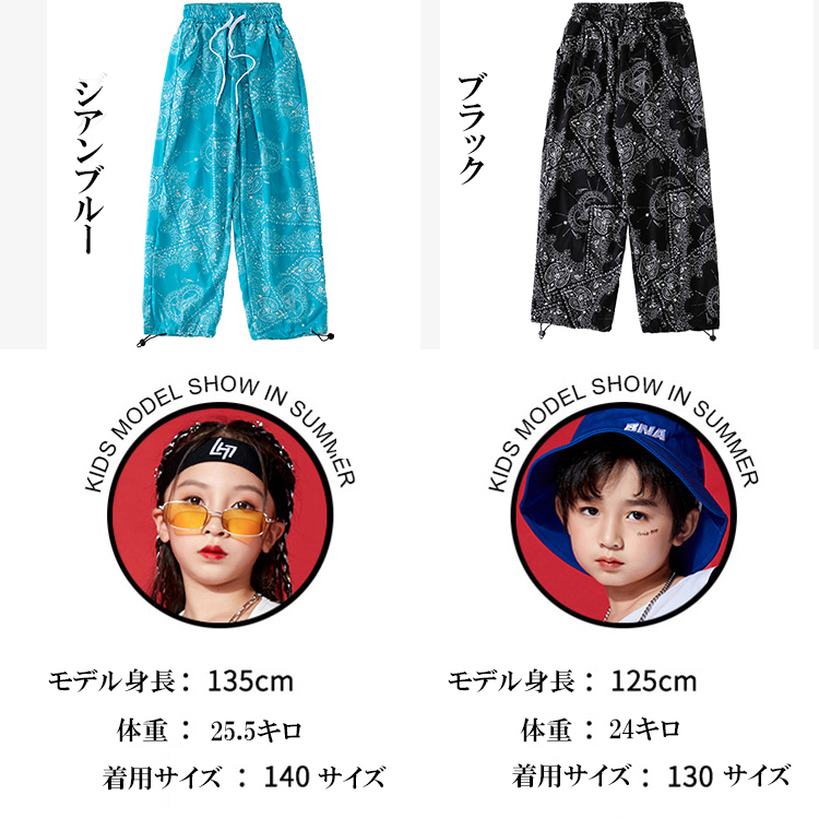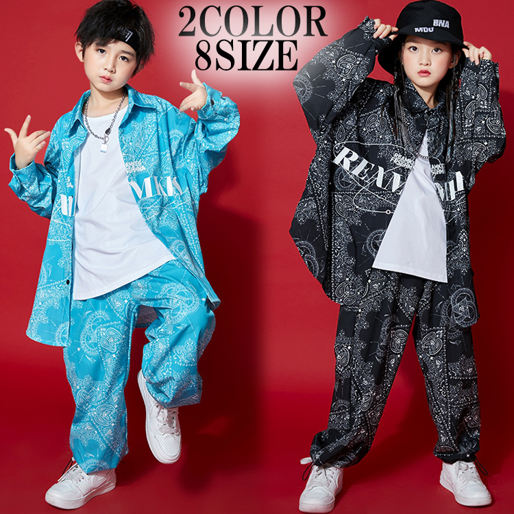 2カラー 8サイズ キッズダンス衣装 ペイズリー柄 ロングパンツ 長袖シャツ キッズダンス 総柄 キッズボトムス キッズシャツ 長ズボン 長袖シャツ ドローコード キッズダンス