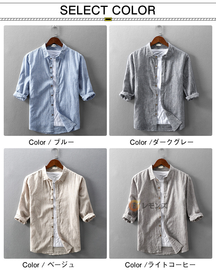 ※お客様のご覧になられますパソコン機器及びモニタなどの違い、また室内、室外での撮影により実際の商品素材の色と相違する場合もありますのでご了承下さい。商品情報商品名 リネンシャツ 七分袖シャツ メンズ シャツ 7分 トップス素材 綿55% 麻45%カラー ブルー ダークグレー ベージュ ライトコーヒー生産国 中国包装について 環境保護の観点から、「簡易包装」を推進しております明細書について 当店ではエコロジーと個人情報流出防止のため、ご指示の無い限り明細書を発行しておりません。