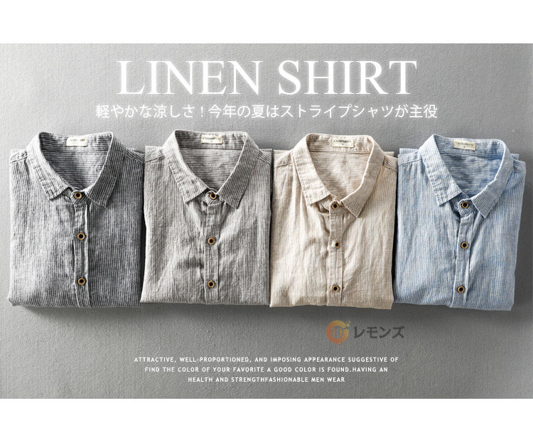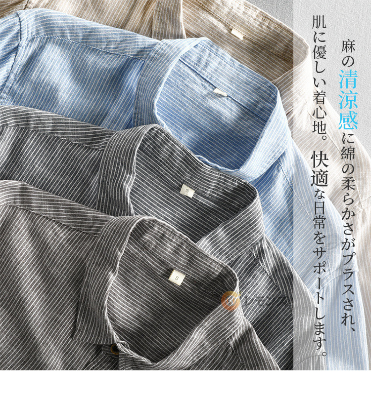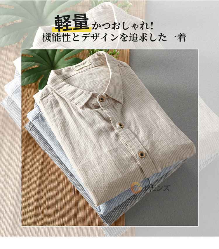 ストライプシャツ リネンシャツ 七分袖シャツ メンズ シャツメンズファッション トップス カジュアルシャツ