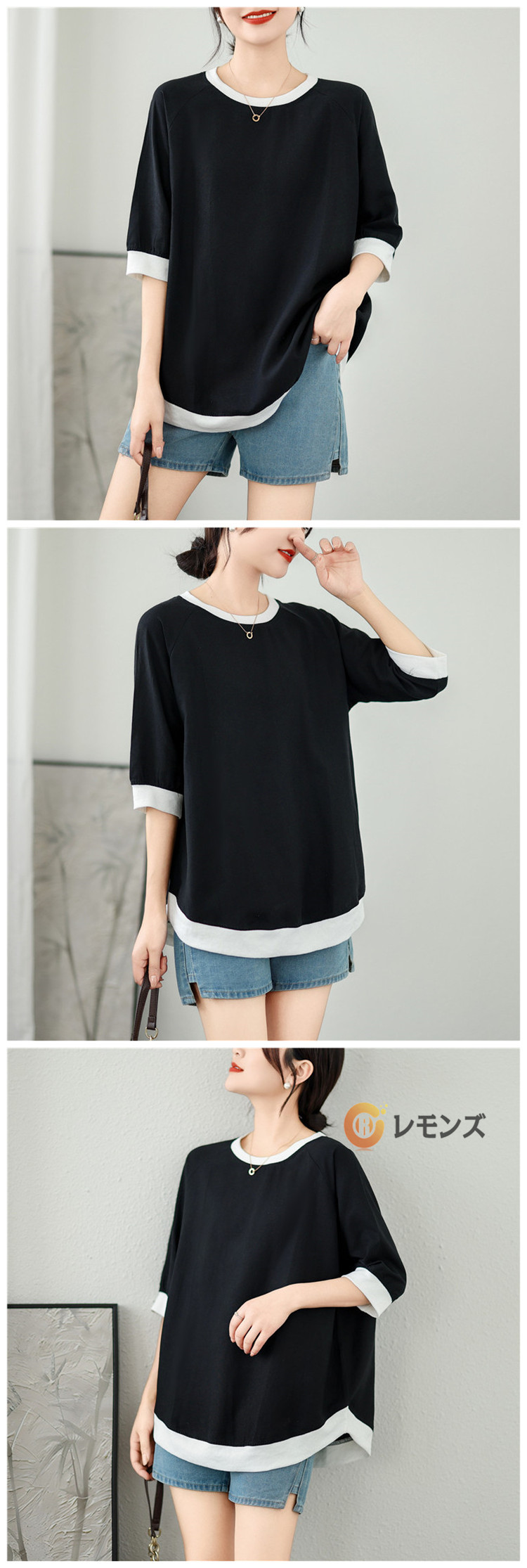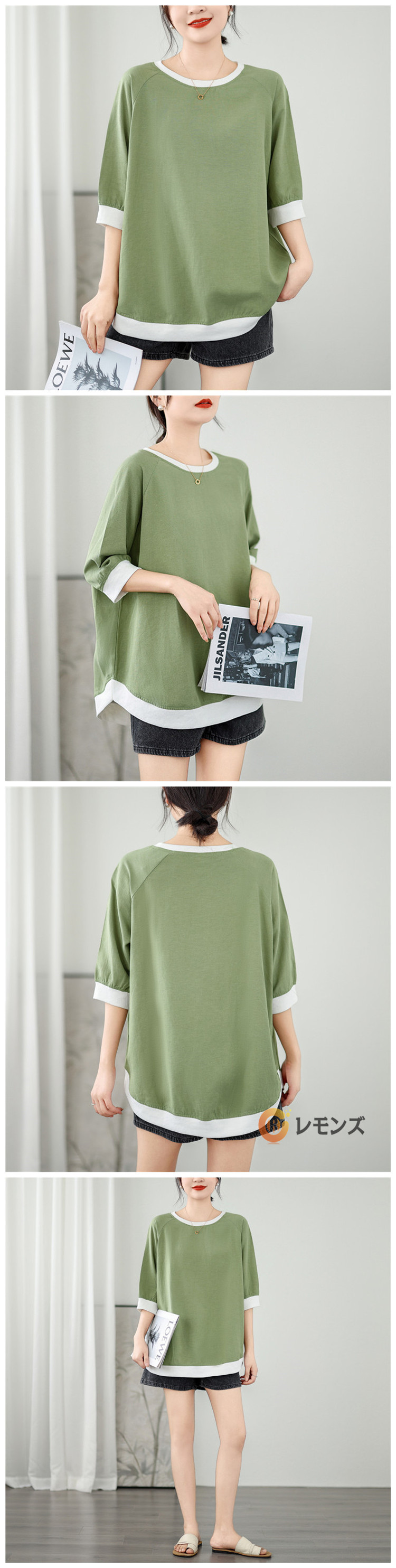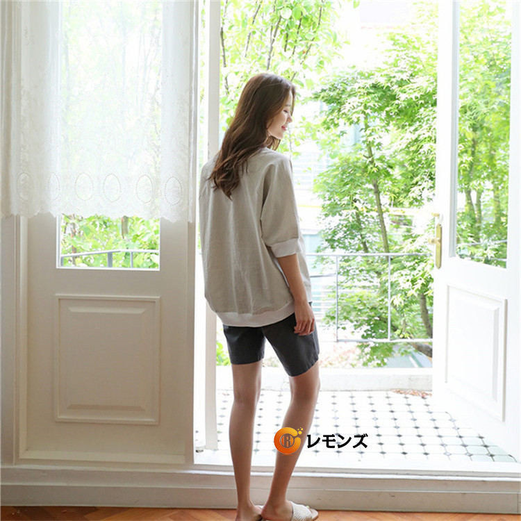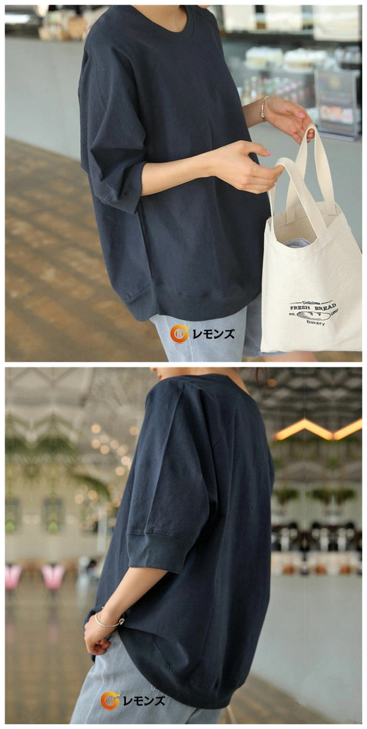 七分袖カットソー レディース 綿麻 リネンTシャツ 7分袖 体型カバー 母の日 プレゼント 部屋着 夏 仕事 ネイビー