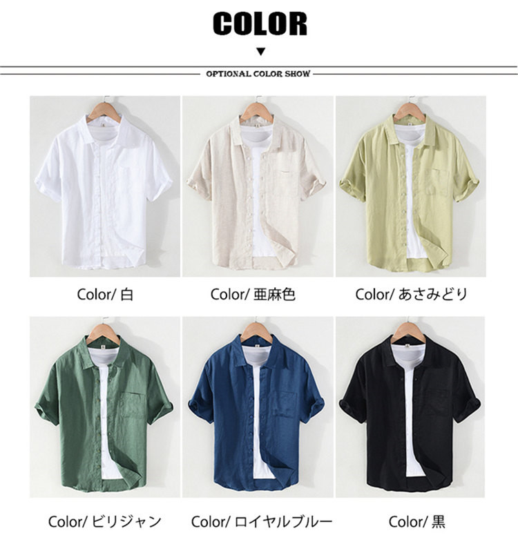 商品名 シャツ リネンシャツ メンズ カジュアルシャツ 半袖シャツ リネン 麻 無地シャツ 開襟シャツ 通気性 夏 おしゃれ トップス