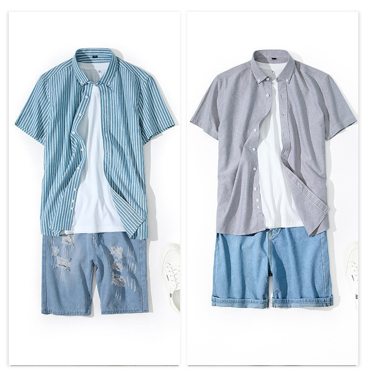 白いシャツ オックスフォード 半袖 シャツ ストライプ柄 チェックメンズファッション トップス カジュアルシャツ