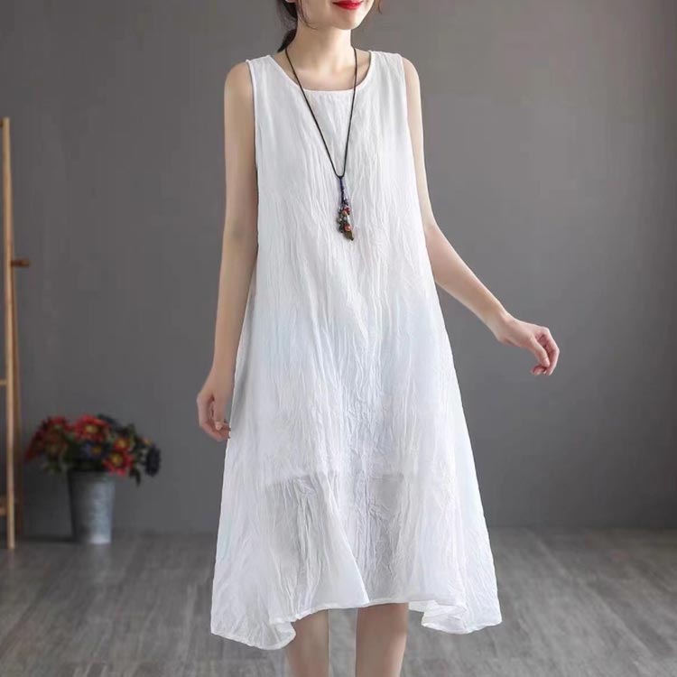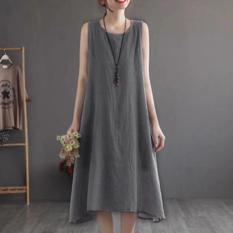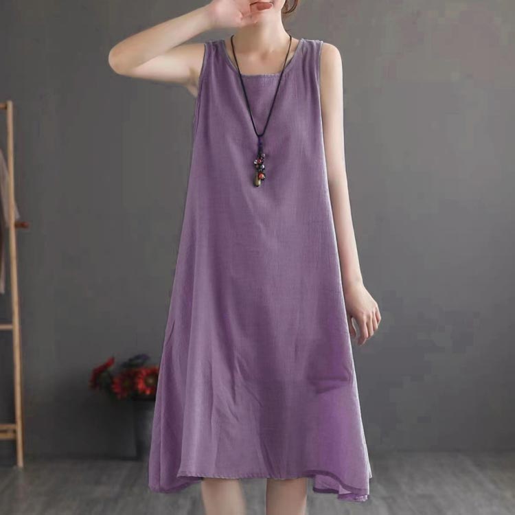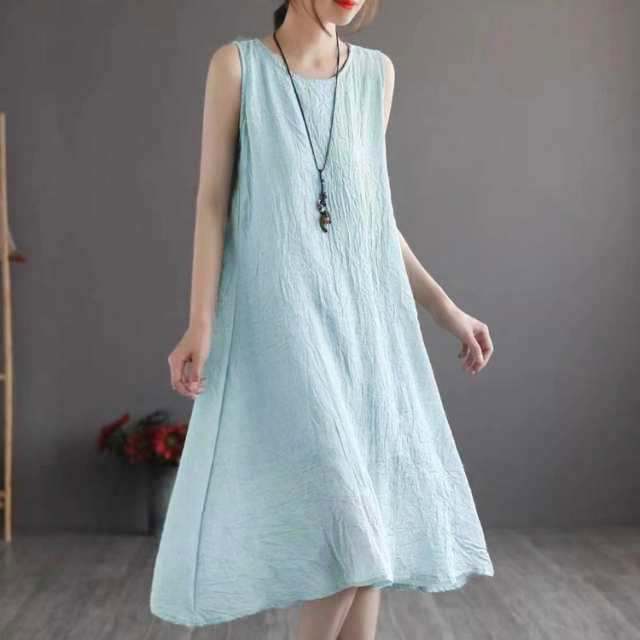 綿 麻 ノースリーブ ワンピース レデ