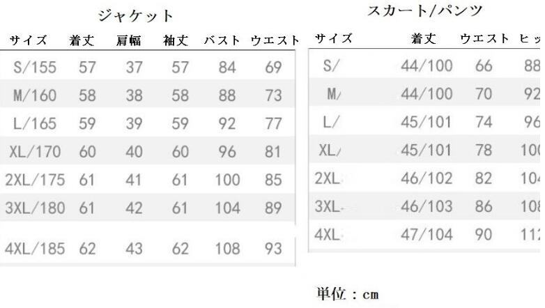 カラー: 黒ジャケット+パンツ 紺ジャケット+パンツ 黒ジャケット+スカート 紺ジャケット+スカート