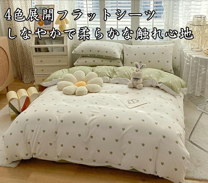 ハート柄 大人気 4色 新生活 韓国風 3点セット 寝具カバーセット 掛け布団 ベッド用品 1.2m フラットシーツ ボックスシーツ シングル セミダブル ダブル 4点セット1.5m 1.8m