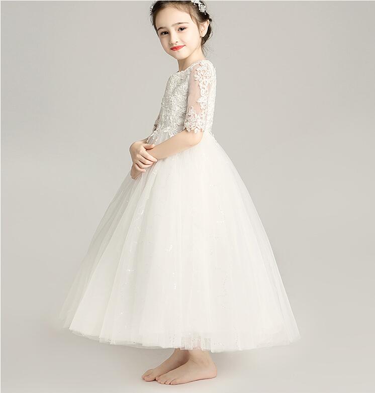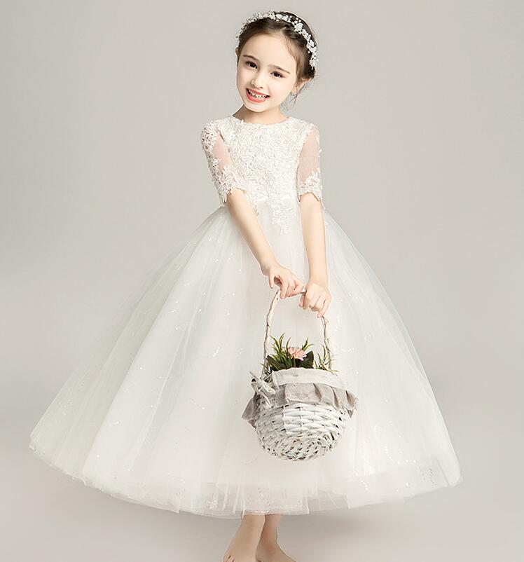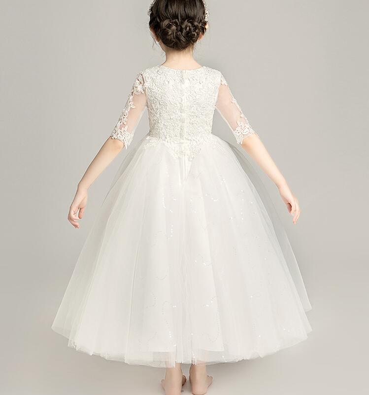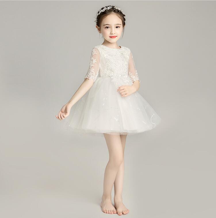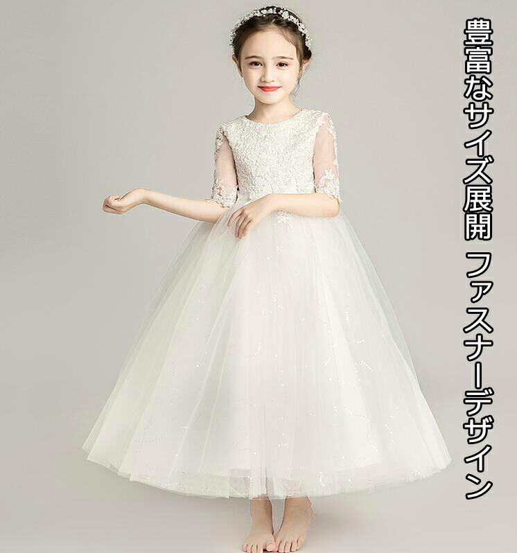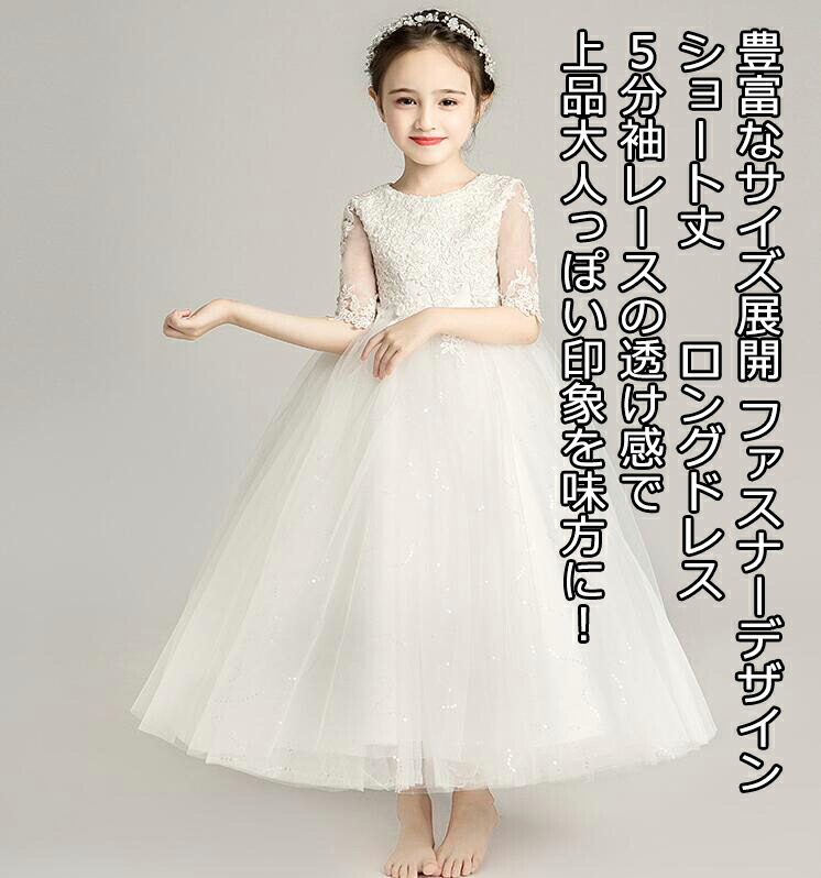5分丈ドレス ウンドネック 子供ドレス 発表会ドレス ワンピース ジュニア 女の子 ロング コンクール ドレス キッズドレス リボン 演奏会 ステージ衣装 舞台 100~160 ショート丈