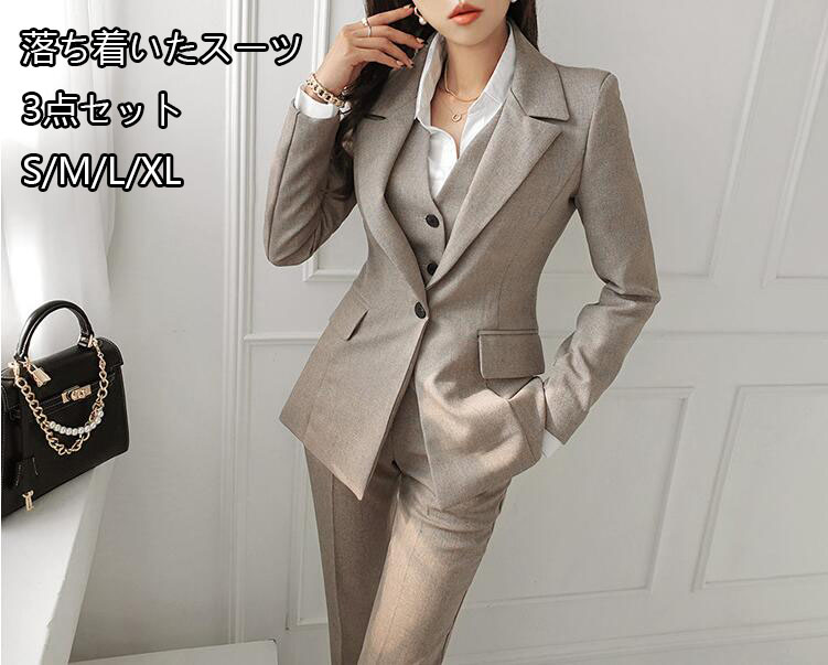 激安 パンツス一ツ 3点セット 無地 レディース ジャケット+ベスト+パンツ レディーススーツ S~XL カジュアルスーツ オシャレスーツ 3ピーススーツ セットアップ