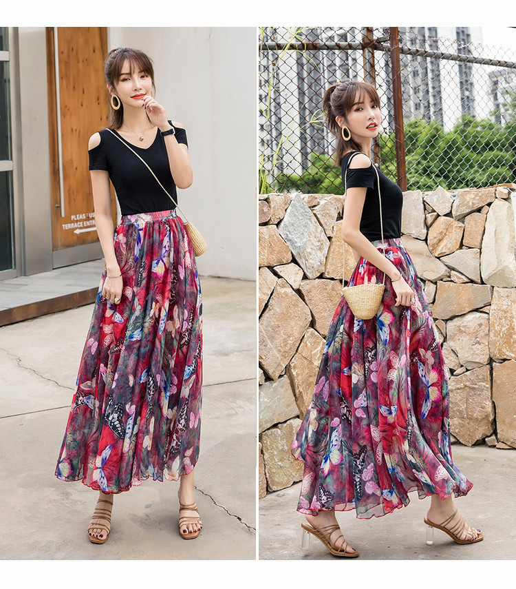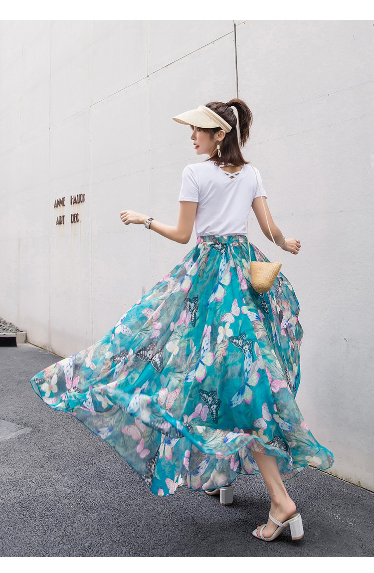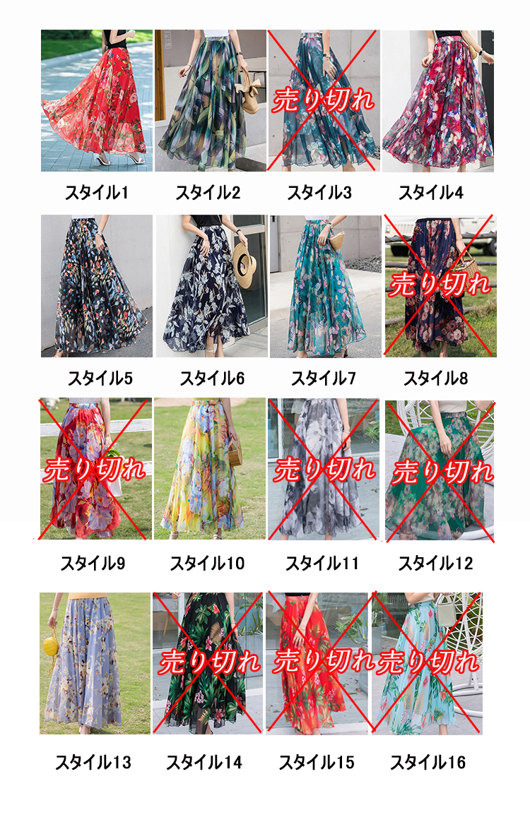 ブルーのスカートを探していて、 色味が好みで7番をチョイスしたのですが、 柄が思ったよりリアルな蝶々で 若干怖かったので星3でごめんなさい。 生地はサラサラで軽やかで良かったです! もう気持ち、ちょっと丈が長かったら なお良かったかなと思います。