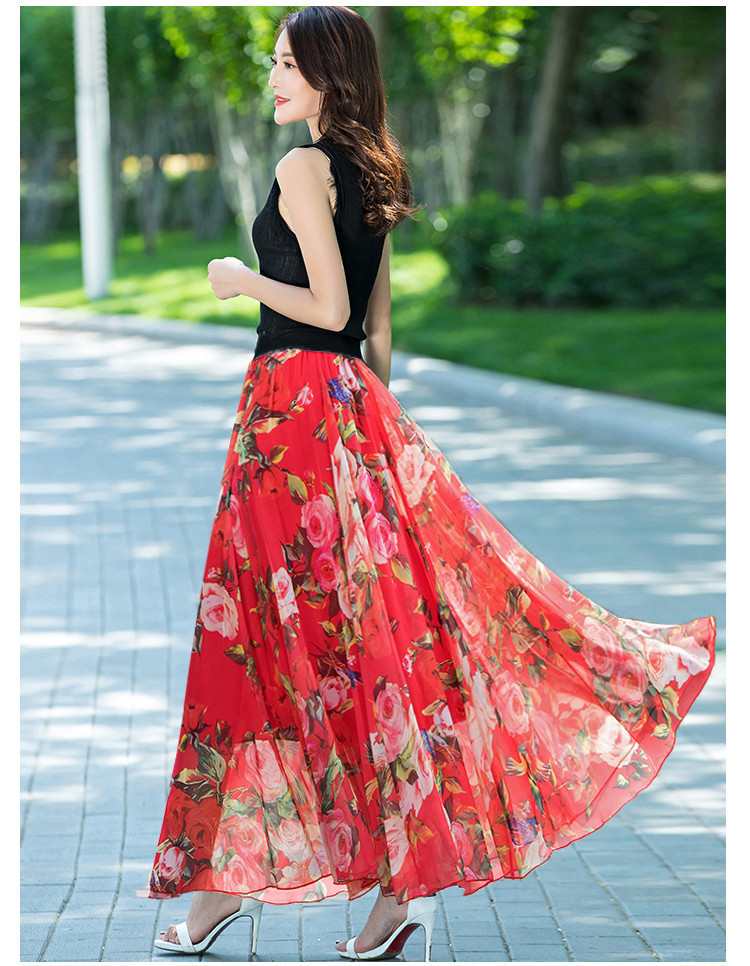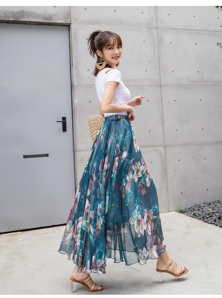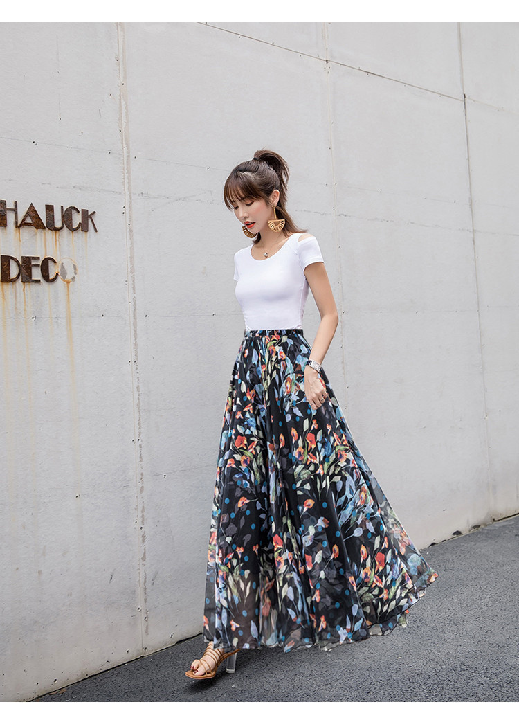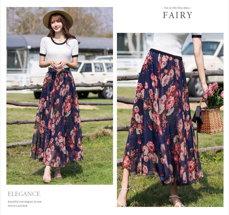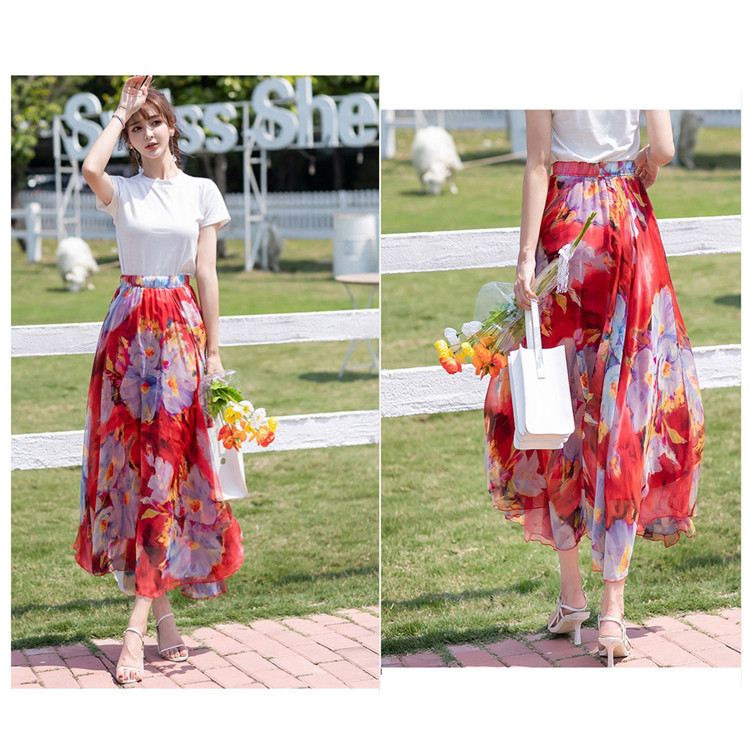 スカート レディース ボトムス ロング丈 マキシ丈 マキシスカート 膝下 ひざ下 Aライン フレアシルエット ウエストゴム 花柄 フラワー柄 大きいサイズ ゆったりフラワーフレアスカート