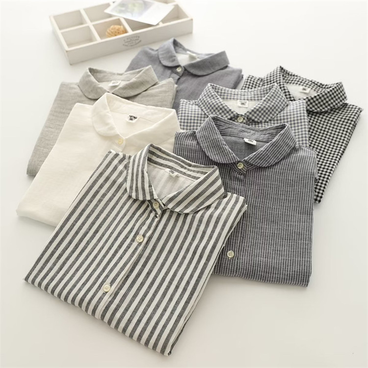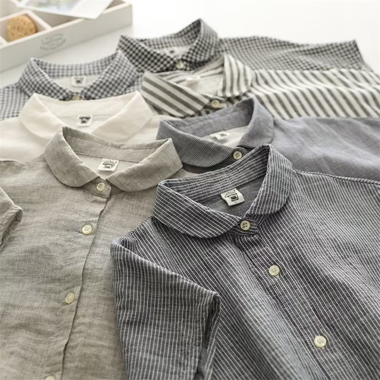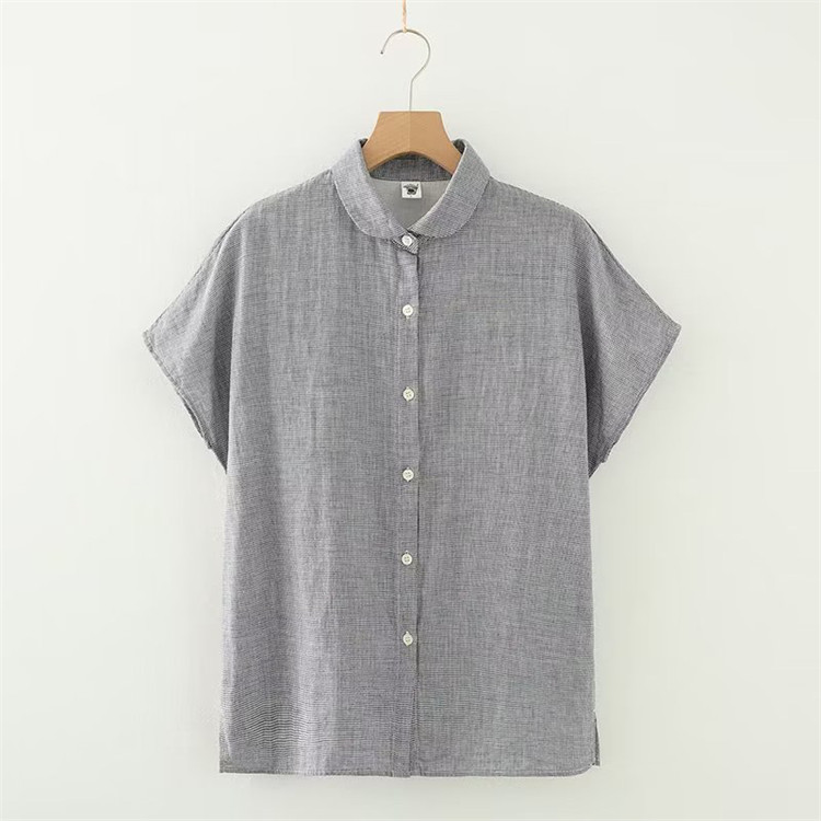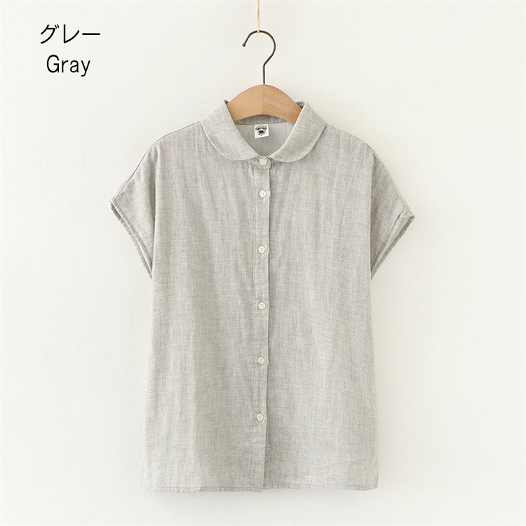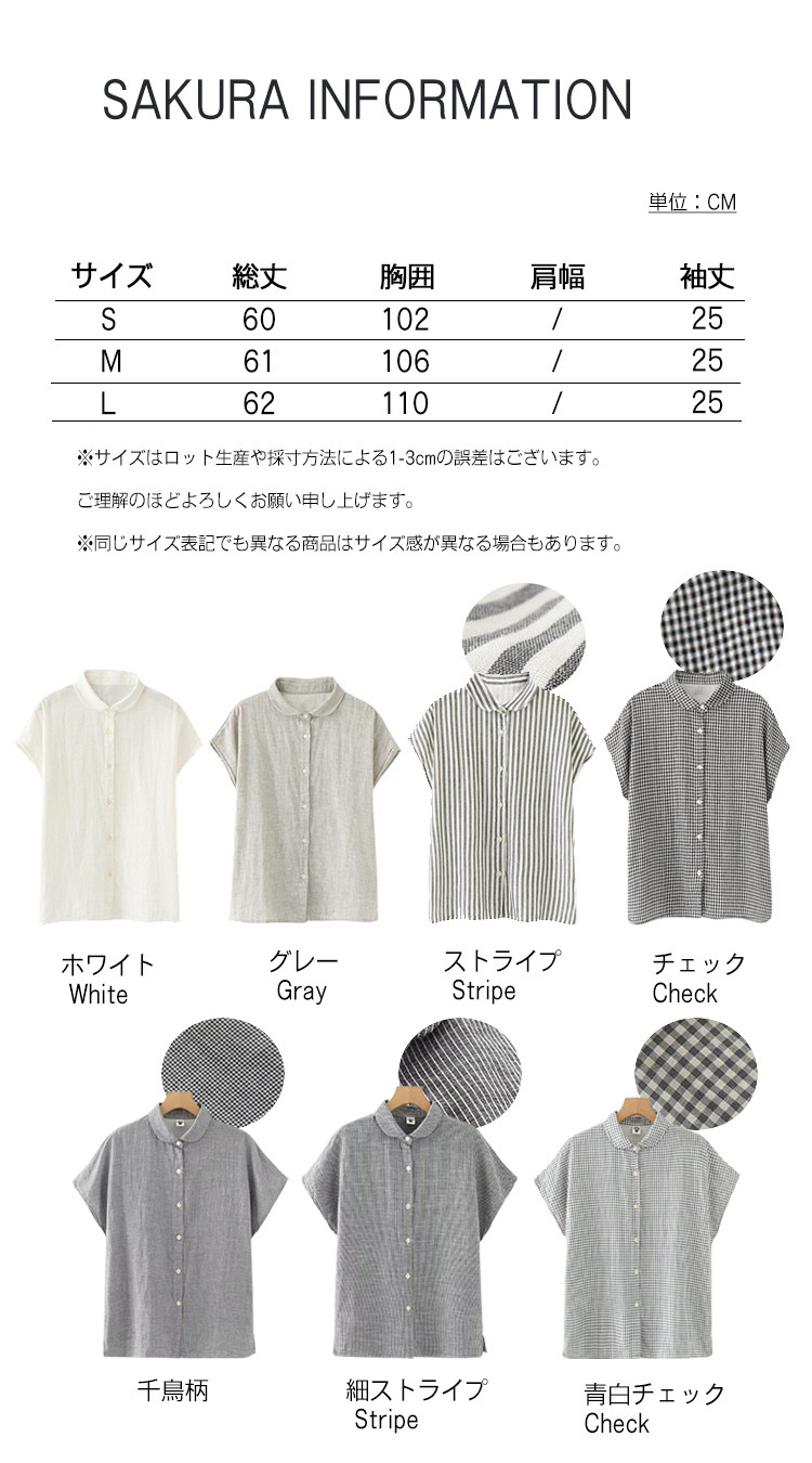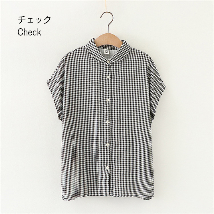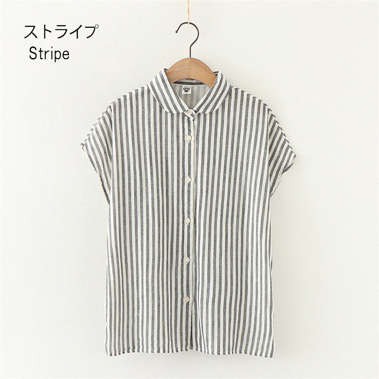 シャツ フレンチスリーブ レディース トップス 半袖ブラウス シャツブラウス 丸襟 白シャツ 白ブラウス 無地 ストライプ チェック柄 袖なし 綿100% 半袖 コットン100% ガーゼ ナチュラル