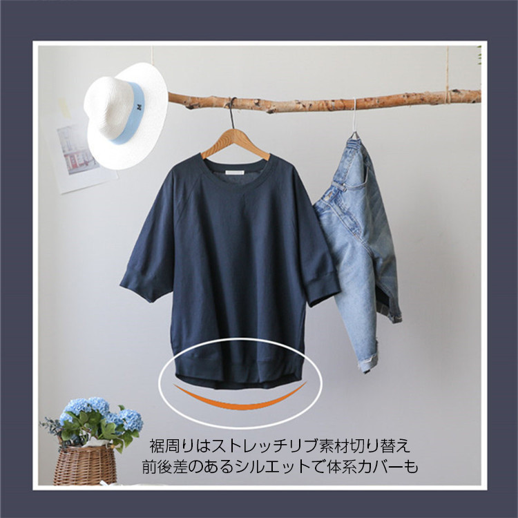 カットソー レディース プルオーバー 七分袖 トップス カジュアル おしゃれ ラグランスリーブtシャツ