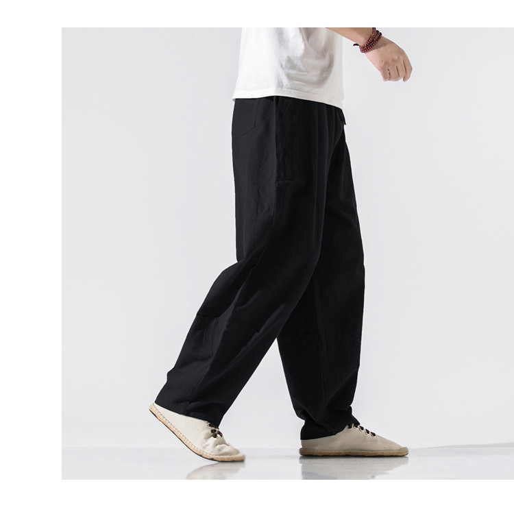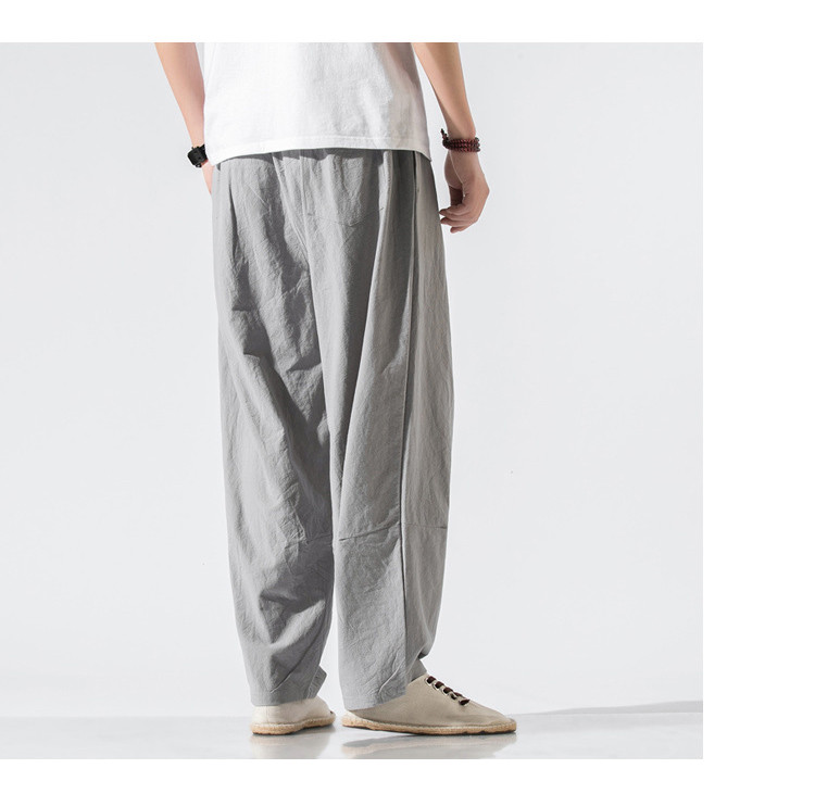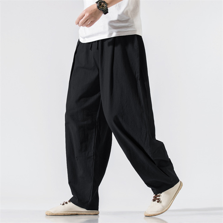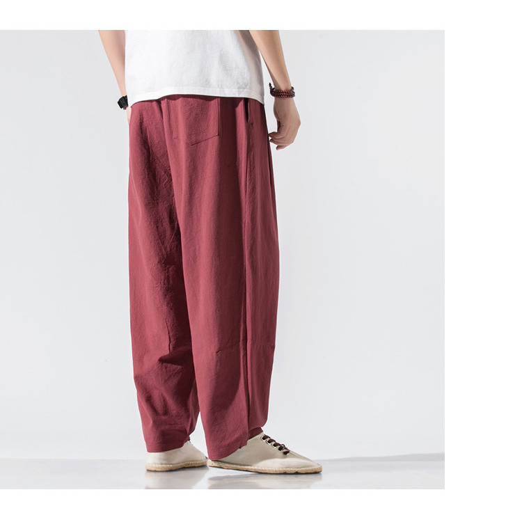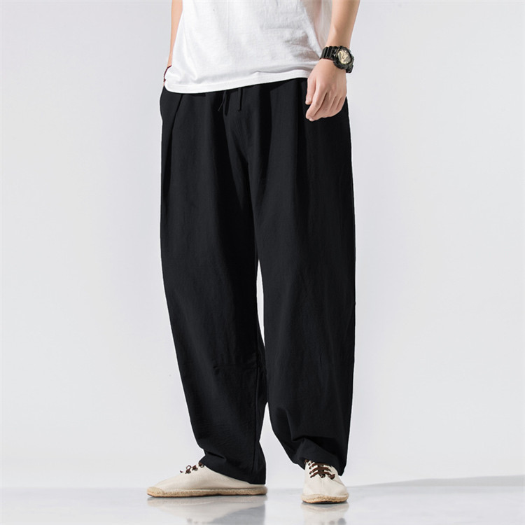 パンツ メンズ ボトムス ズボン 長ズボン ワイドパンツ ワイド ロングパンツ ロング丈 膝下 ひざ下 ウエストゴム 薄手 無地 楽ちん 大きいサイズ ゆったり 夏 リネン素材 サルエルパンツ
