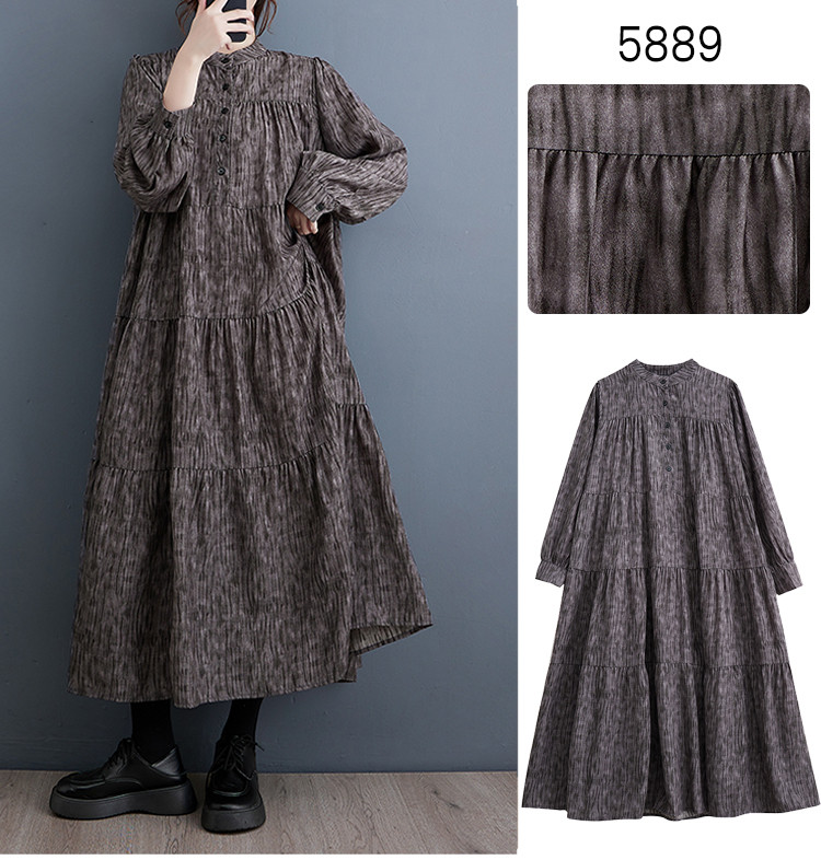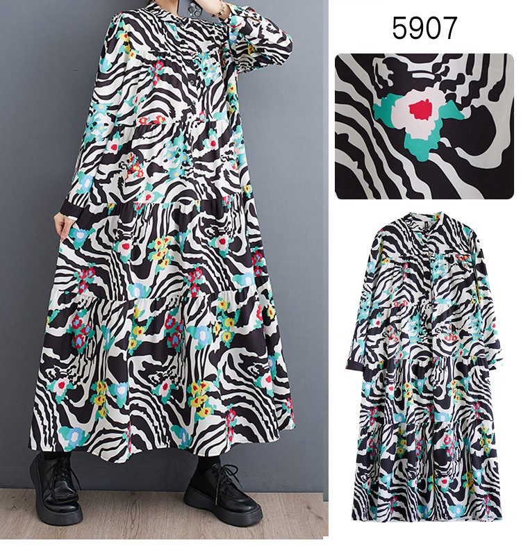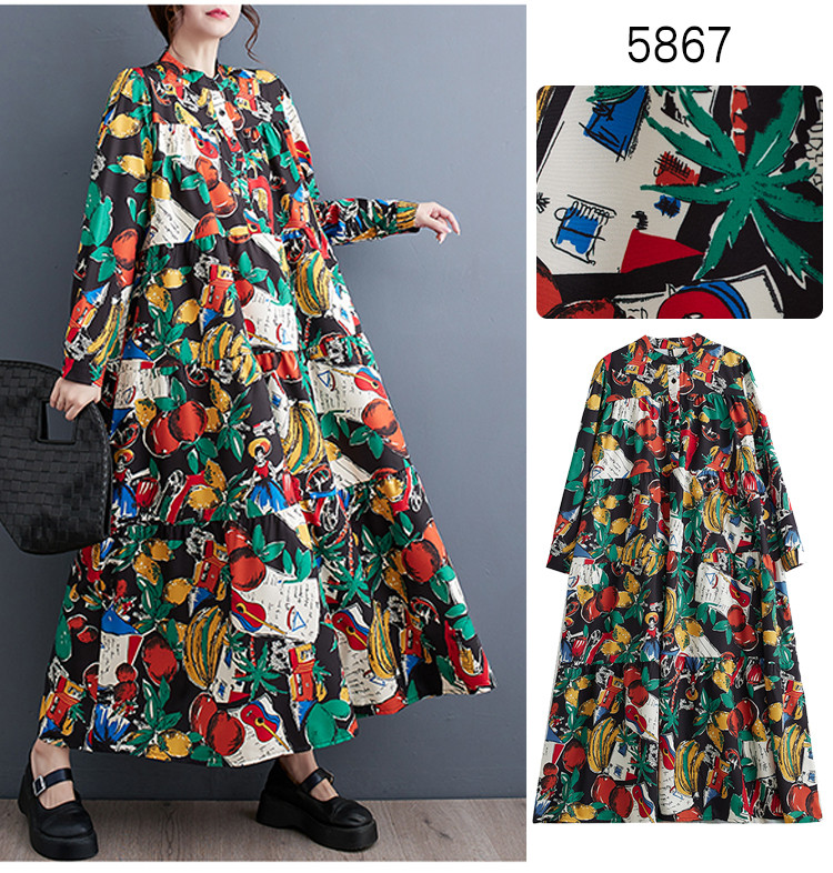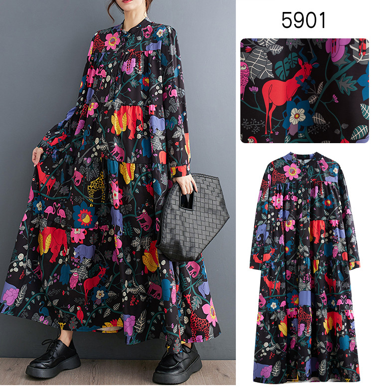 ワンピース フラワー柄 レディース ワンピ ロングワンピース ロングワンピ ロング 花柄 バンドカラー ハーフボタン 長袖 長そで 大きいサイズ ゆったり 上品