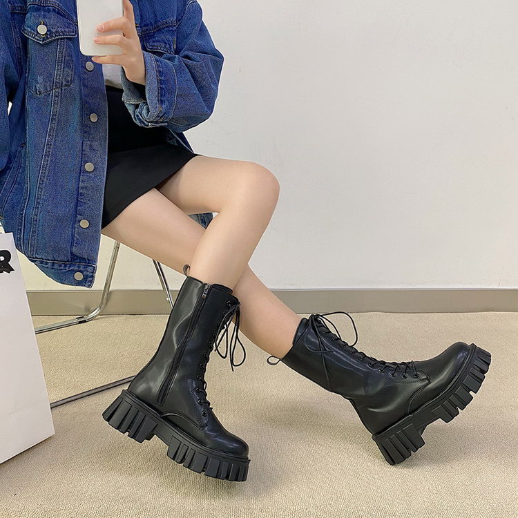 韓国風編み上げ靴厚底ブーツ韓国シューズ