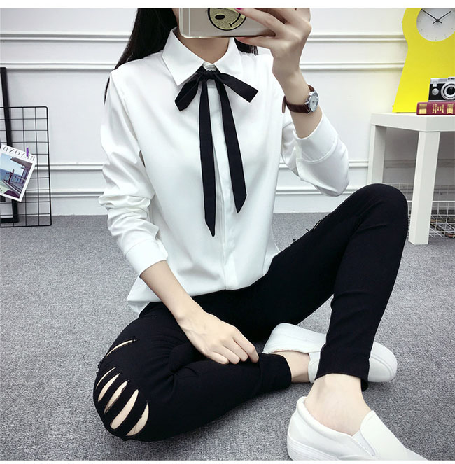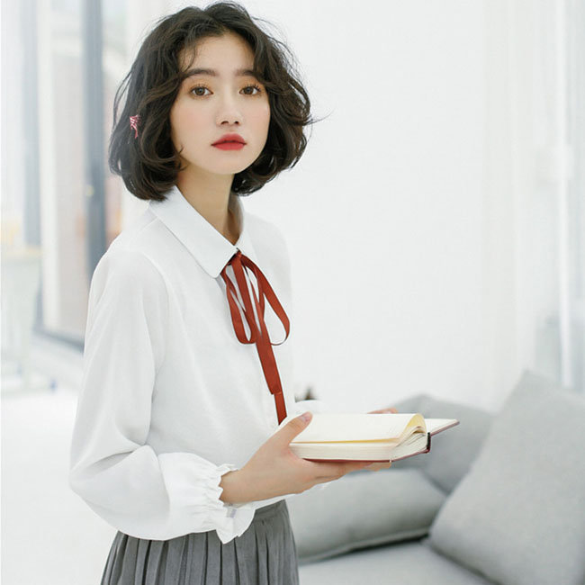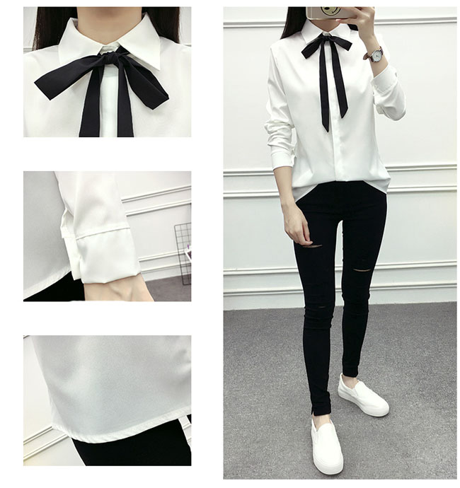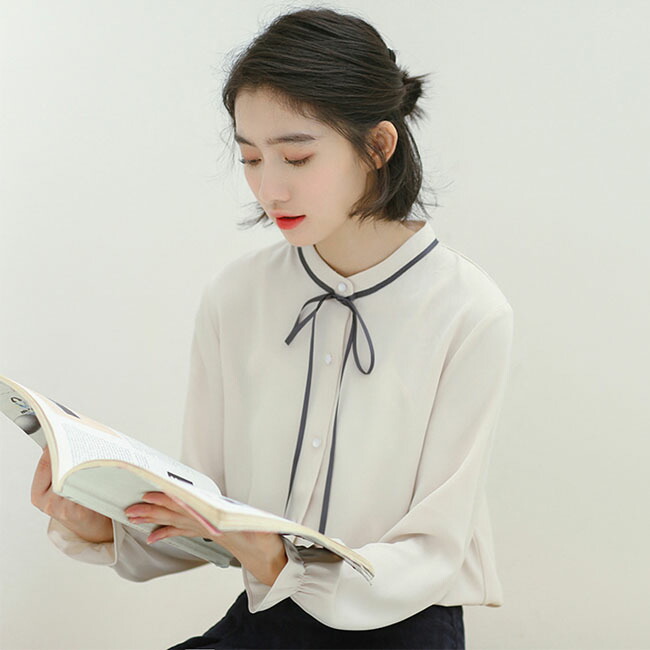 シアースリーブ ドッキングシャツ ボウタイシャツブラウス