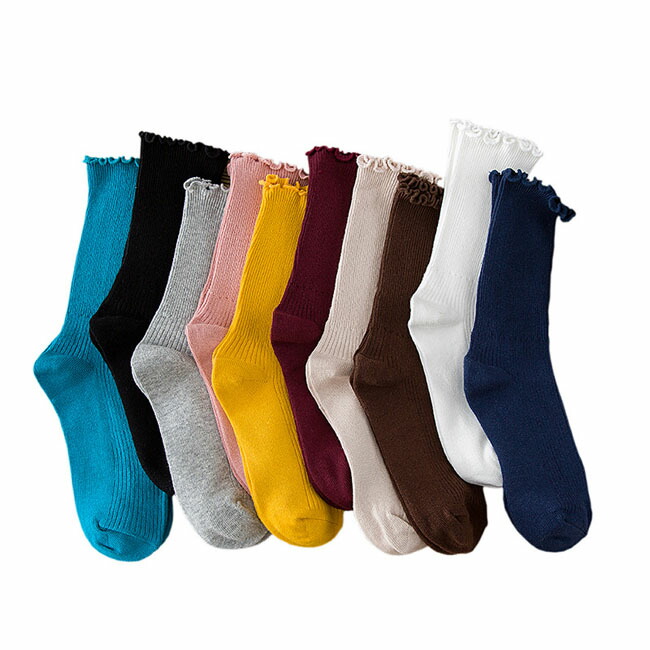 靴下 レディース ソックス ショートソックス ミドル丈 レディース靴下 綿 くしゅくしゅ ゆるふわ ガーリー おしゃれ かわいい 婦人 女性 レディースソックス 履き心地抜群 秋冬 イエロー