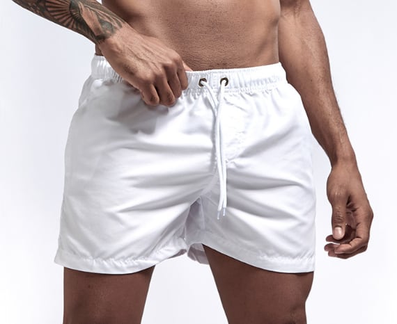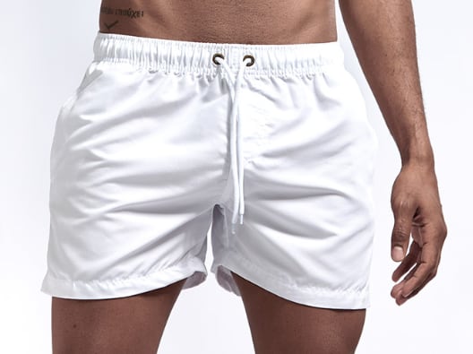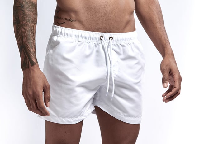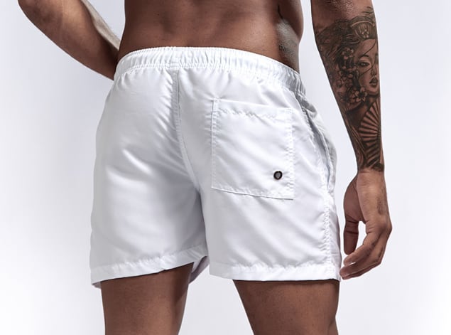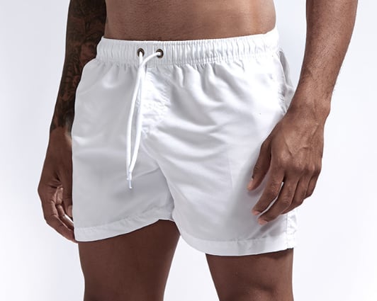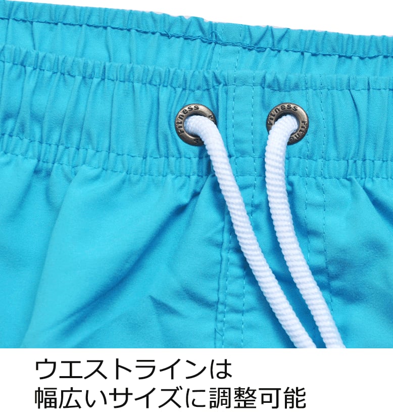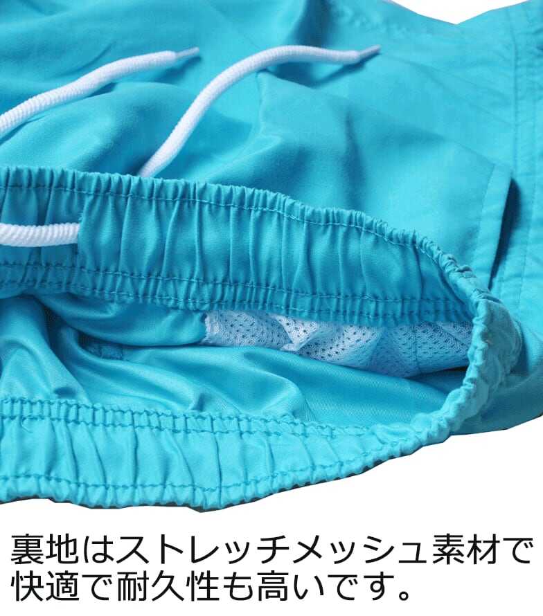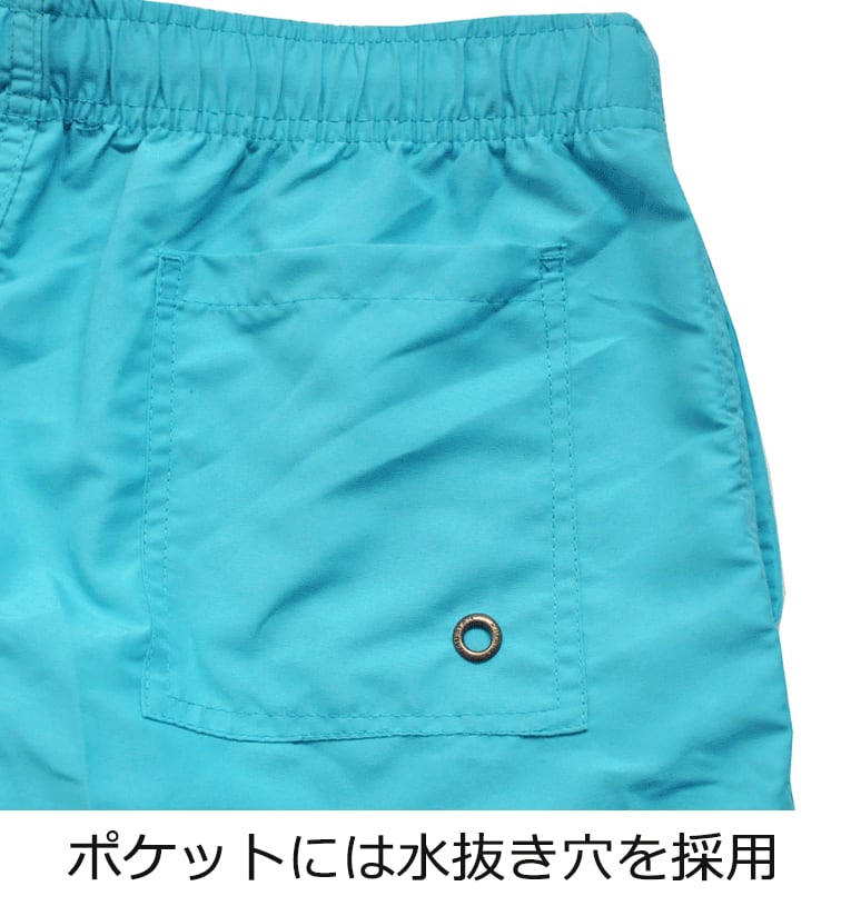 オーソドックスな形ながらトレンドのワイドシルエットの男性用ハーフパンツ水着です。