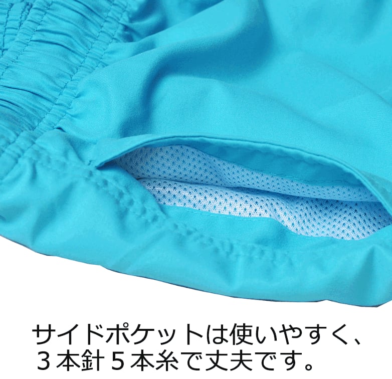 速乾素材で濡れてもすぐに乾いたり、ポケットにもちょっとした持ち物を収納できたりと機能面も優秀で使い勝手が良いです。