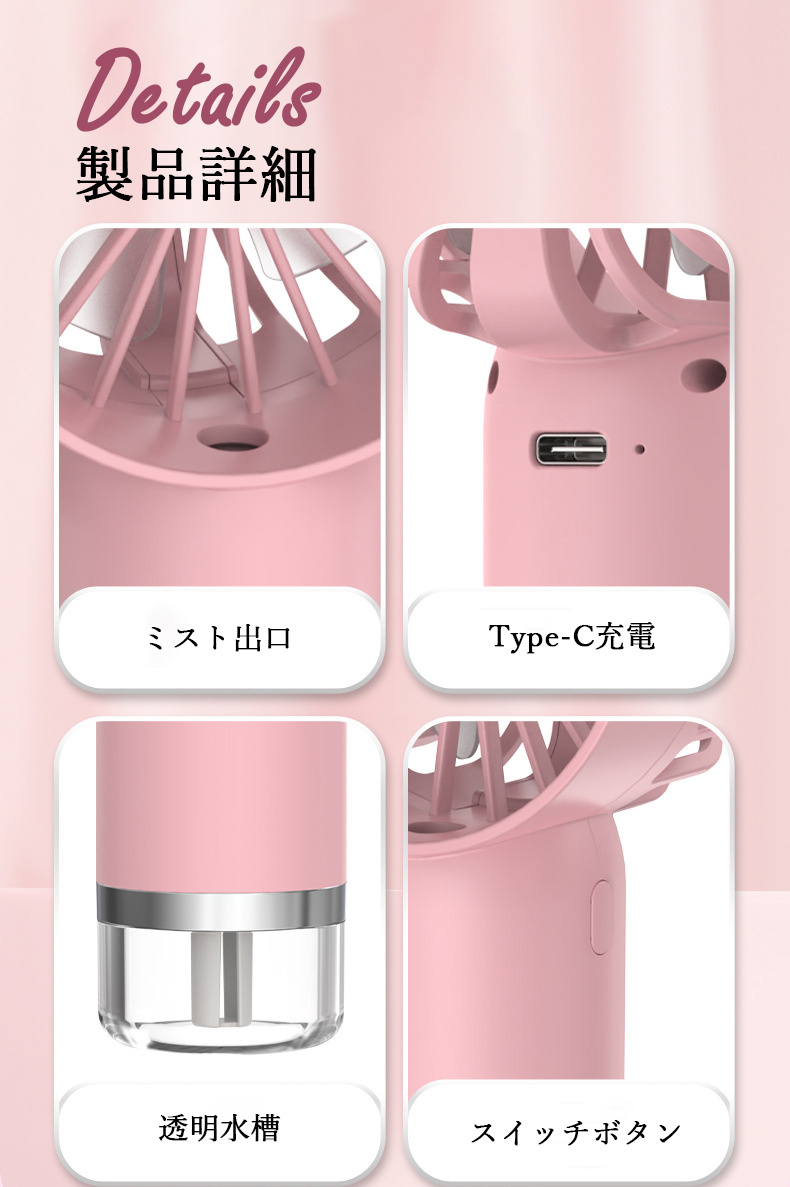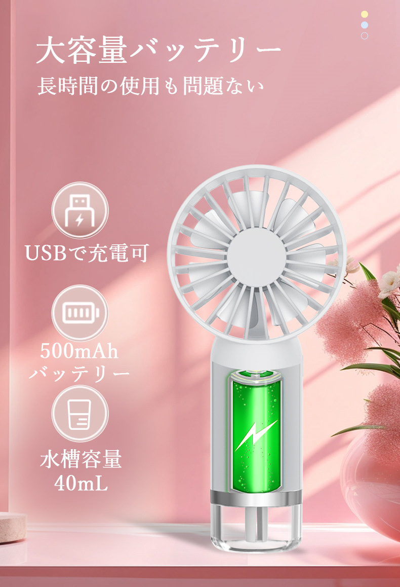 ハンディファン 手持ち扇風機 ミストフ